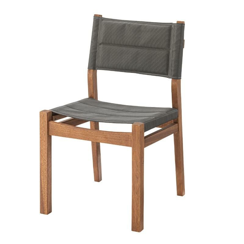 フレームに天然木を使用し、座面と背もたれをメッシュ生地で仕立てたアウトドア風ダイニングチェアです。