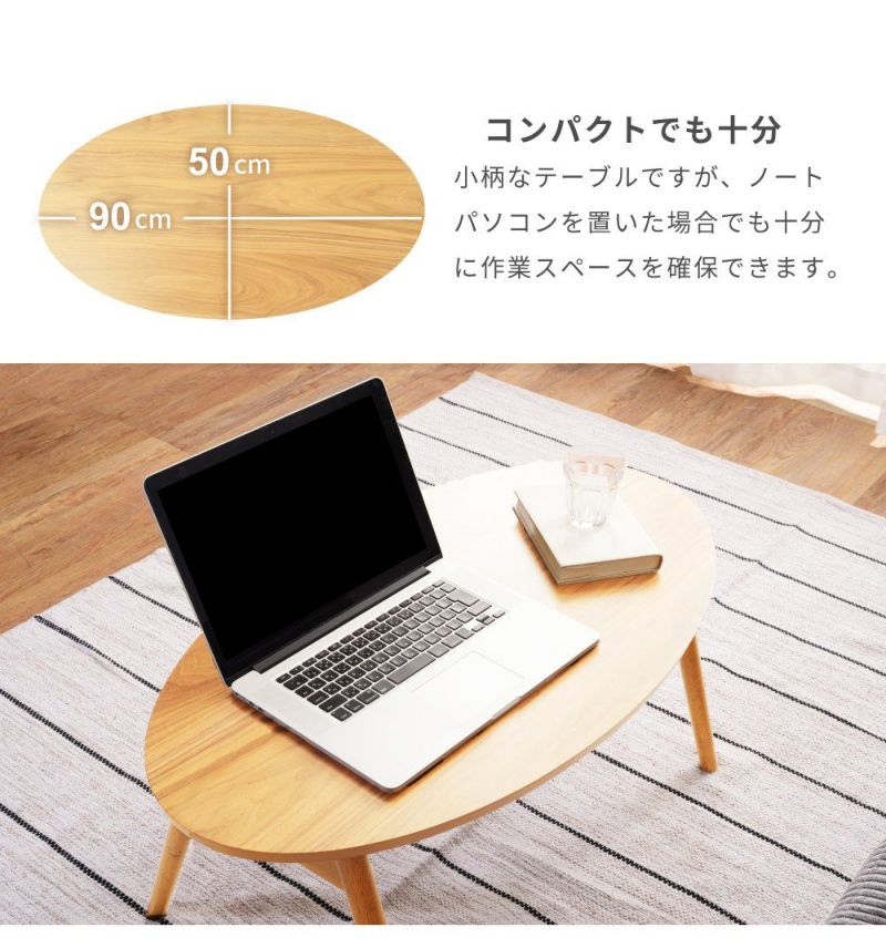 小柄なテーブルですが、ノートパソコンを置いた場合でも十分に作業スペース確保できます。
