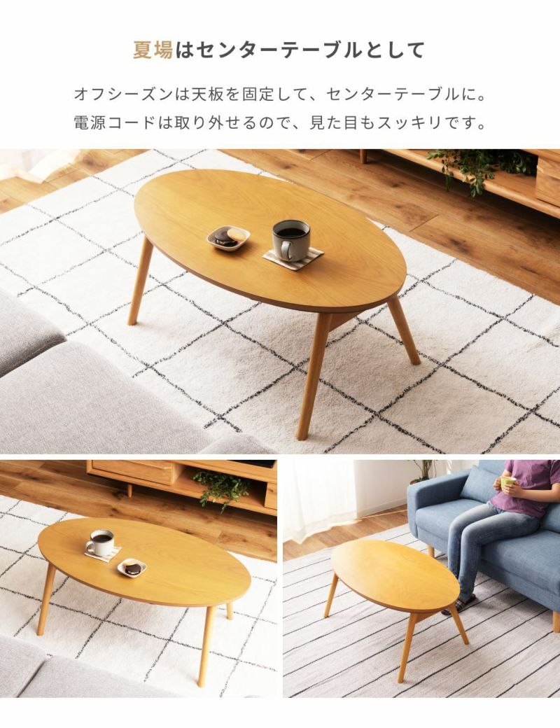 こたつ テーブル 折りたたみ 幅90 おしゃれ コンパクト スリム コーヒーテーブル センターテーブル 1人用 北欧 完成品 ナチュラル オーバル 楕円形 石英管ヒーター 隙間収納 角丸