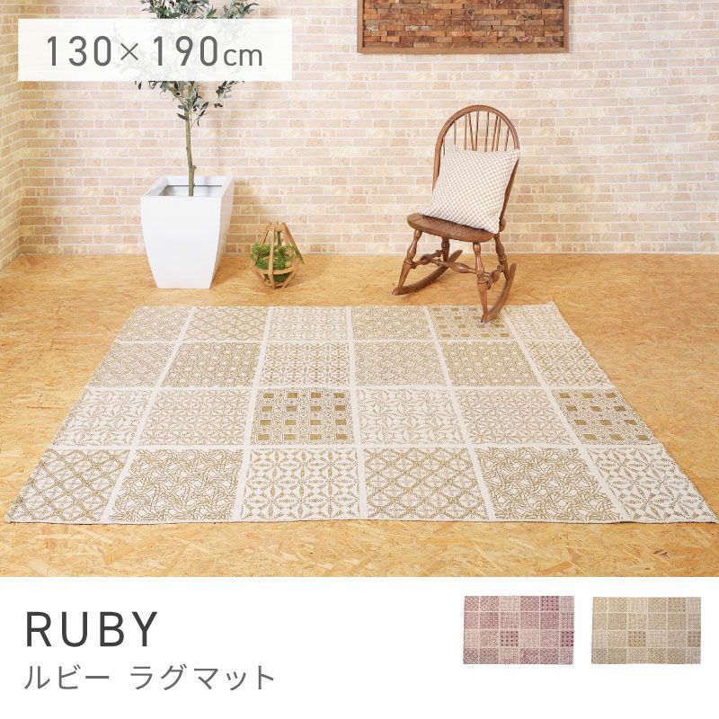 ナチュラルテイストなコットンラグマット ラグ 130×190cm 滑り止め付き ラグマット マット カーペット|RUBY