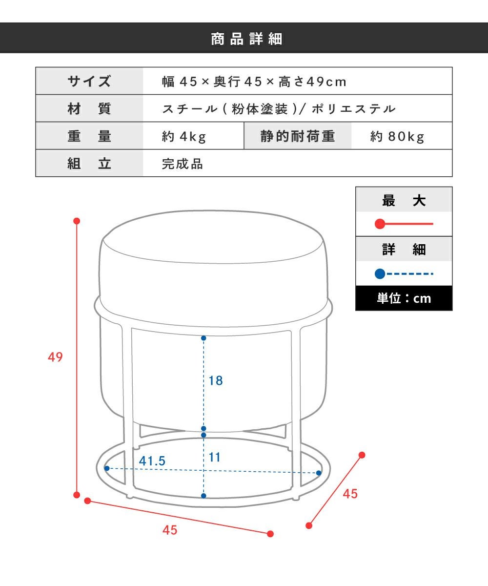 他の画像を見る スチール×ファブリックの丸型スツール スツール 高さ49cm オットマン 椅子 背もたれなし 北欧 ベロア 足置き|ANDRA 送料無料 ¥ 9,460 税込 〜 ¥ 税込 (0) お気に入りに登録する