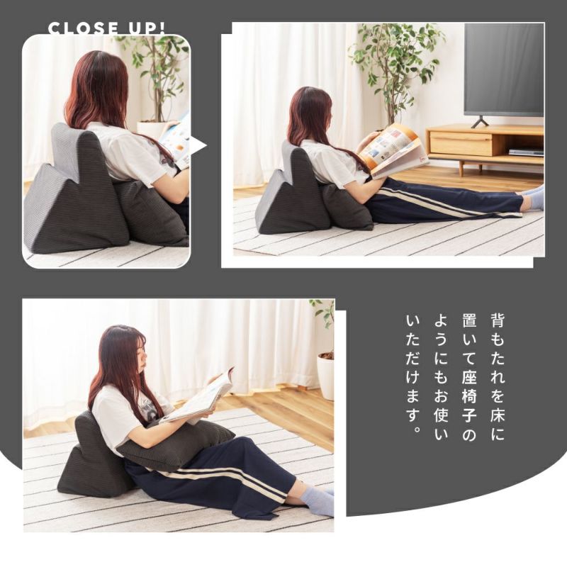 背もたれ・クッションは独立しているので、場所や使い道に合わせてお好きな位置に置いてリラックスしていただけます。