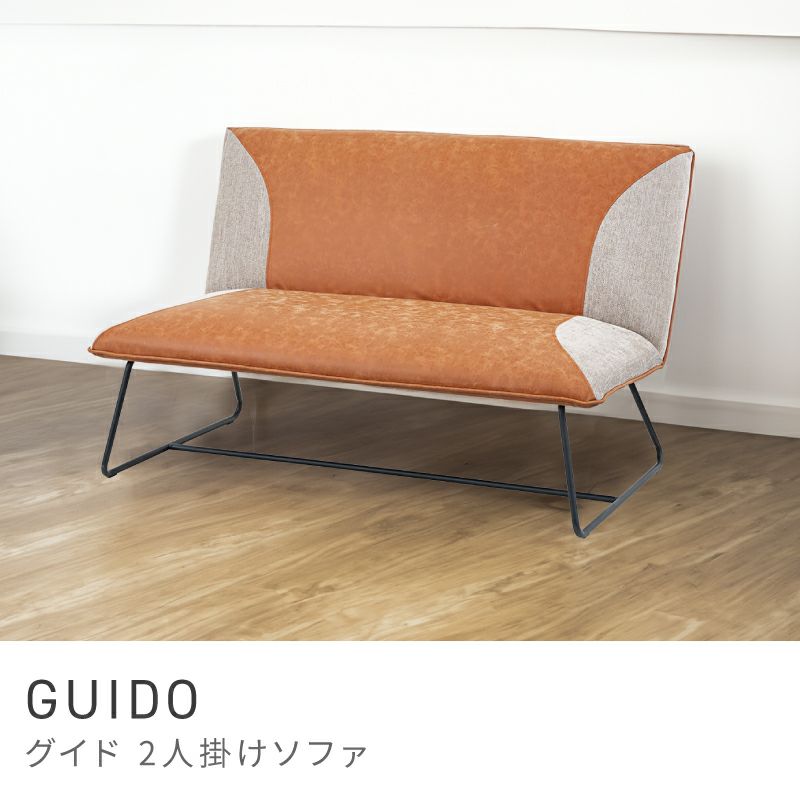 レザー×ファブリックの個性的な一人掛けソファ ソファ 二人掛け 2P ナチュラル チェア 椅子 イス ソフトレザー|GUIDO