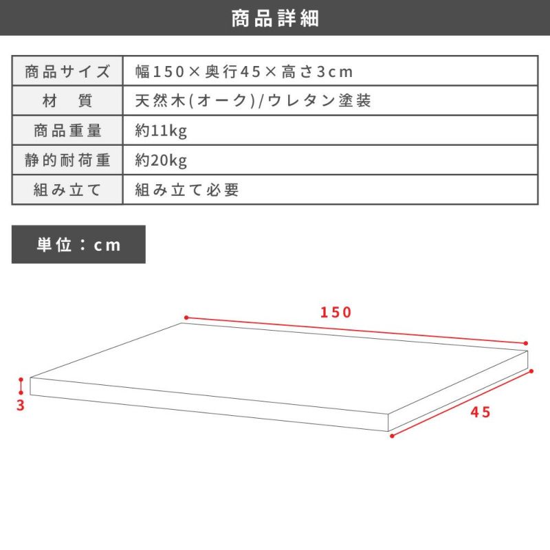 サイズ 幅150×奥行45×高さ3cm