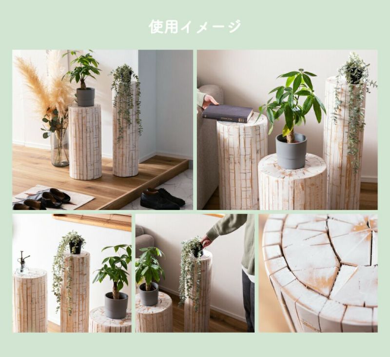 プランターベース おしゃれ 花台 木製 丸型 円形 木目 インテリア ハイタイプ ホワイト 完成品 組立不要 フラワーベース プランタースタンド 天然木 白 北欧