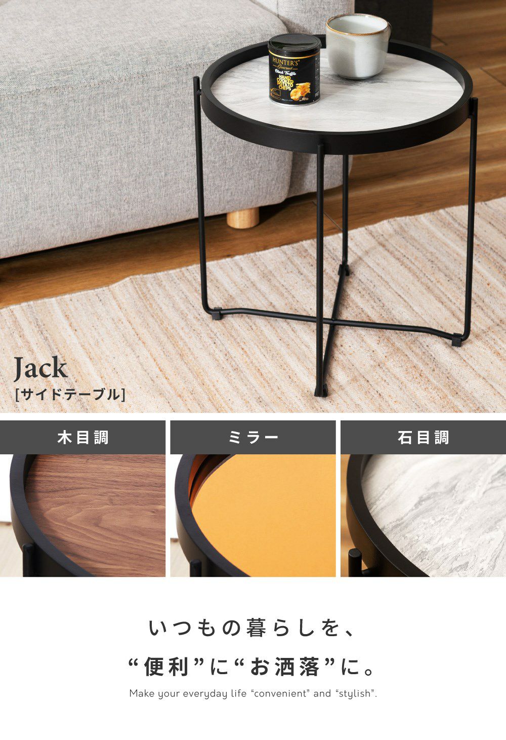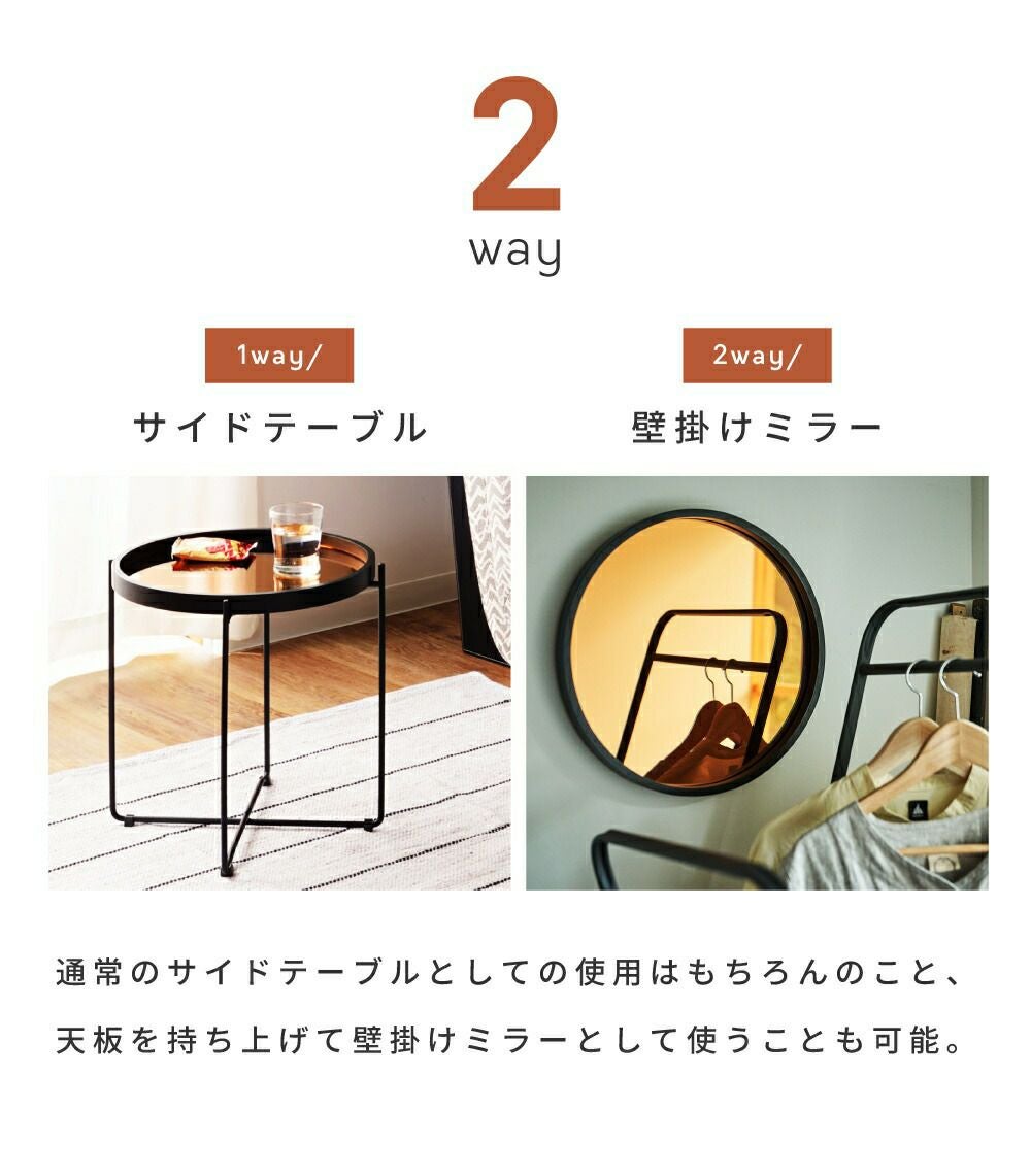 取り外せる便利な天板付き サイドテーブル 高さ43cm 折りたたみ おしゃれ 木製 壁掛け ミラー 鏡|JACK