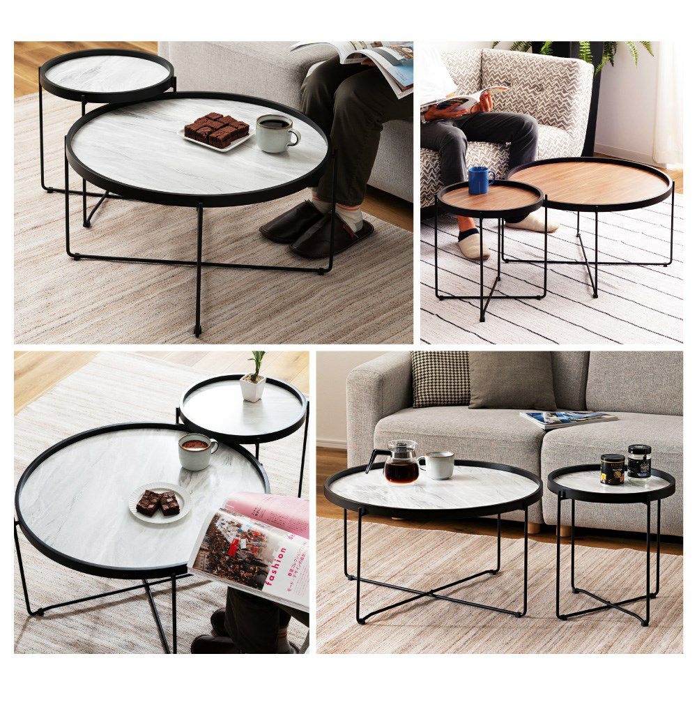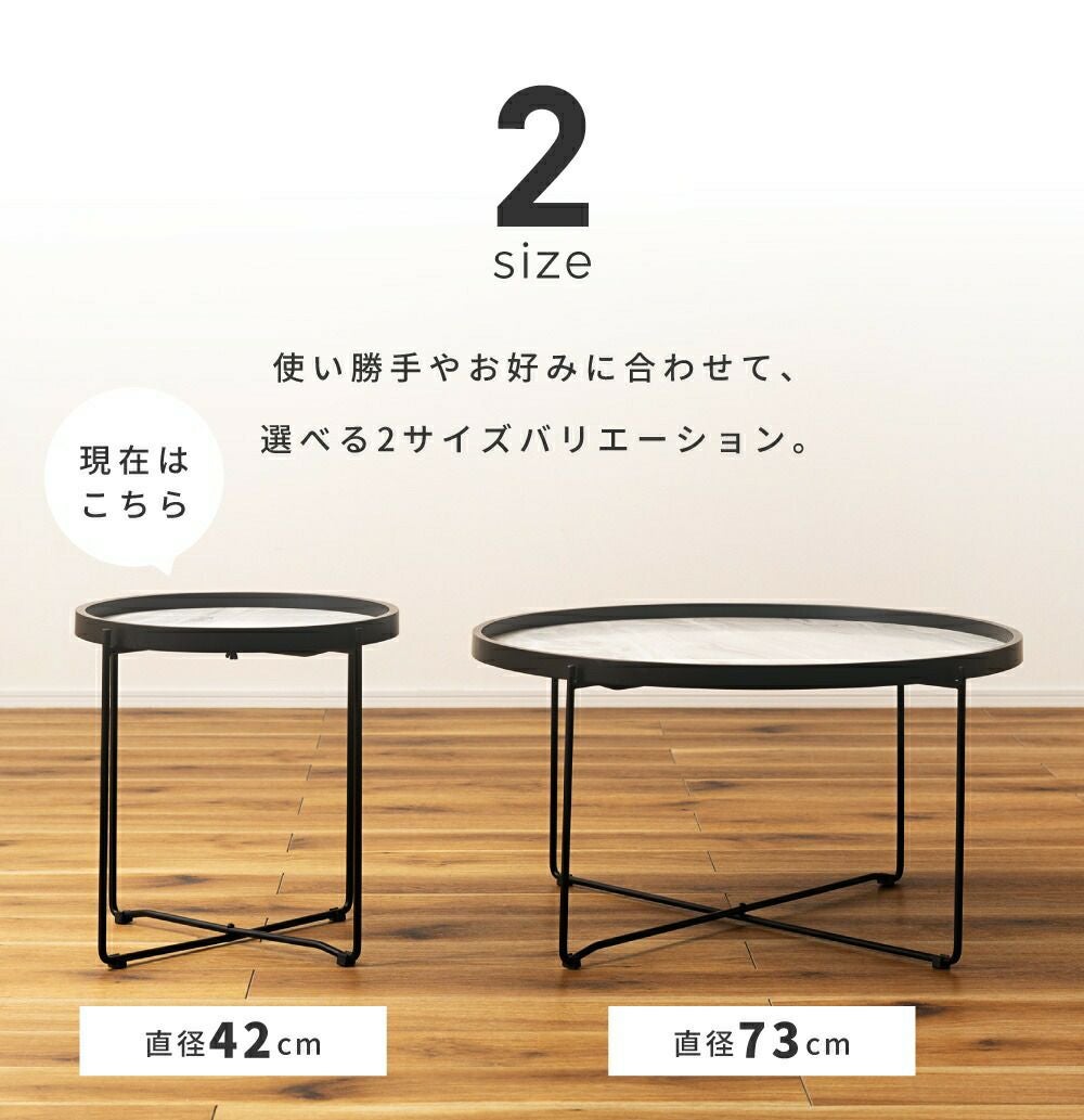 異素材ミックスで空間格上げ ローテーブル 幅78cm センターテーブル 丸テーブル 机|Tess