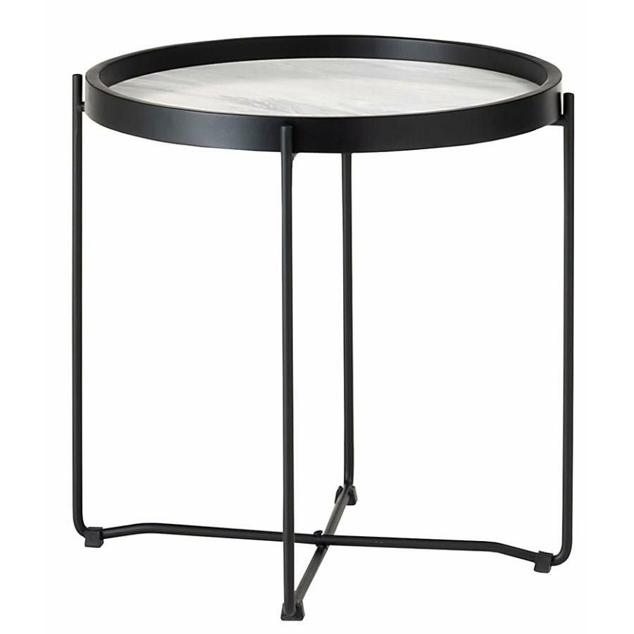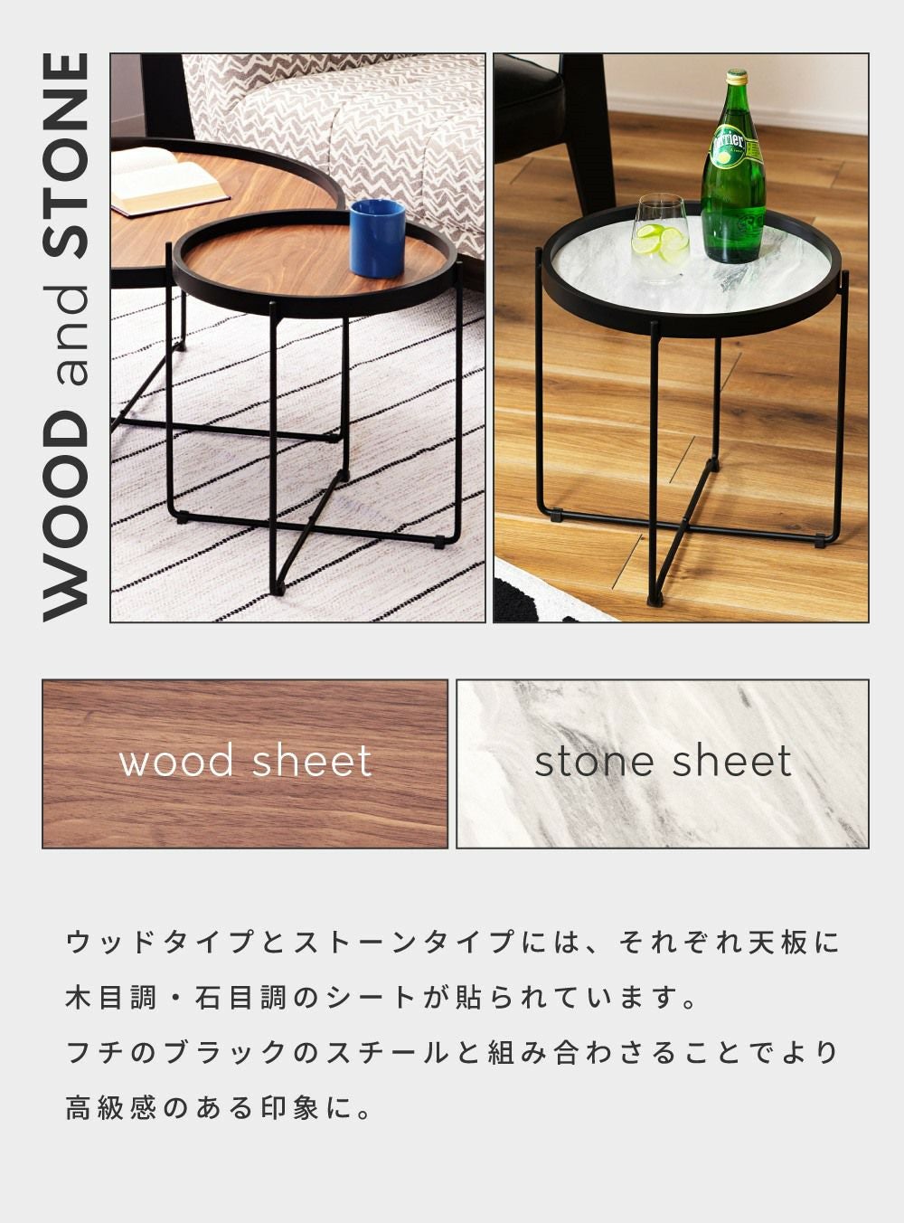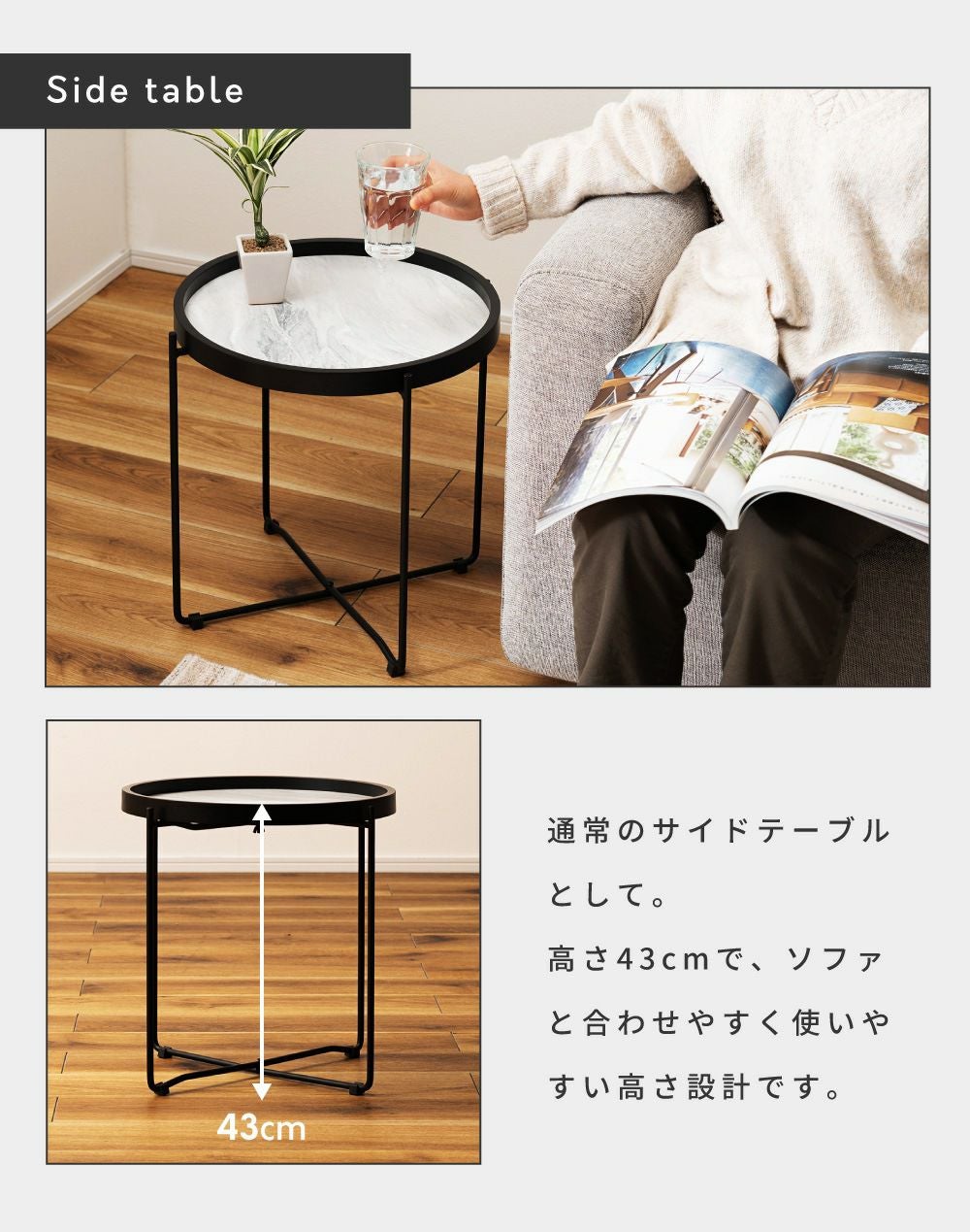 お部屋に映える異素材ミックス サイドテーブル ナイトテーブル 丸テーブル コーヒーテーブル 高さ42.5cm 軽量|Gino