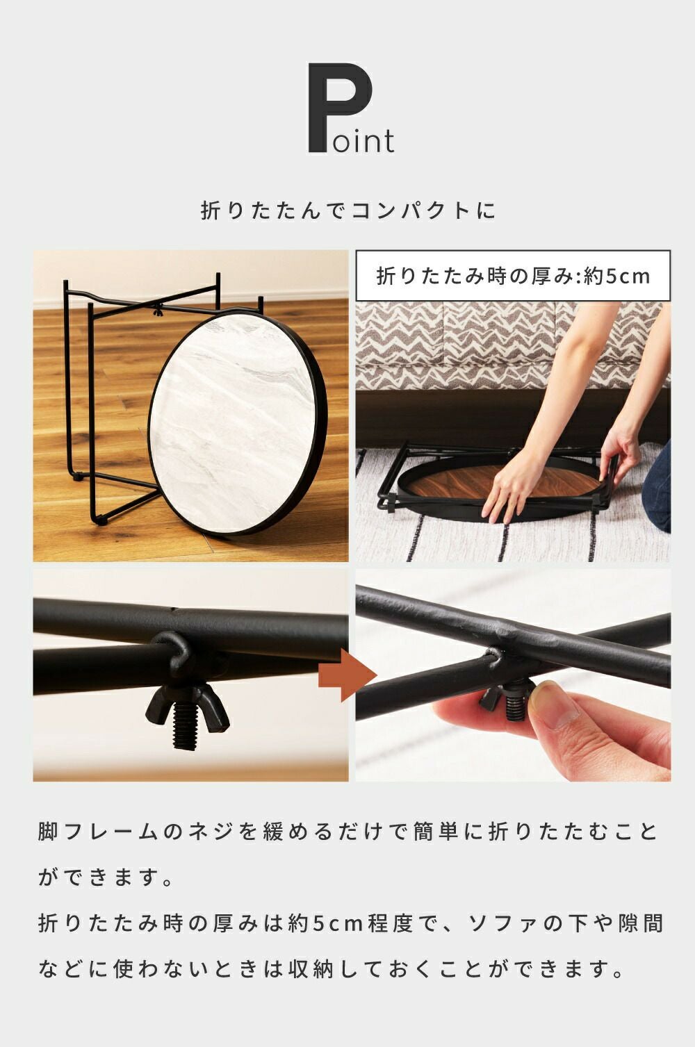 床置きもできる便利な天板 ローテーブル 折りたたみテーブル 幅73cm 2WAY おしゃれ 丸テーブル|JACK