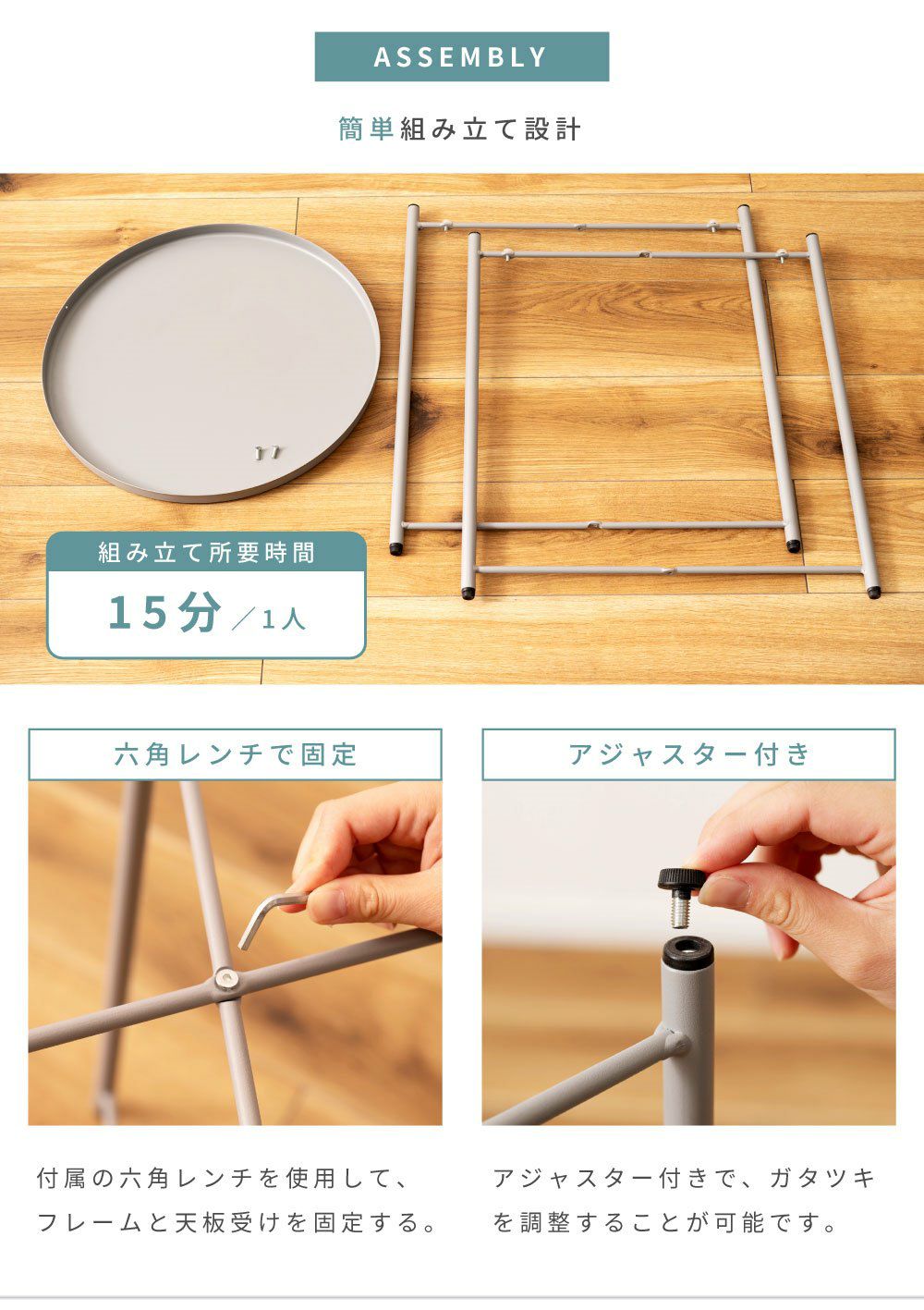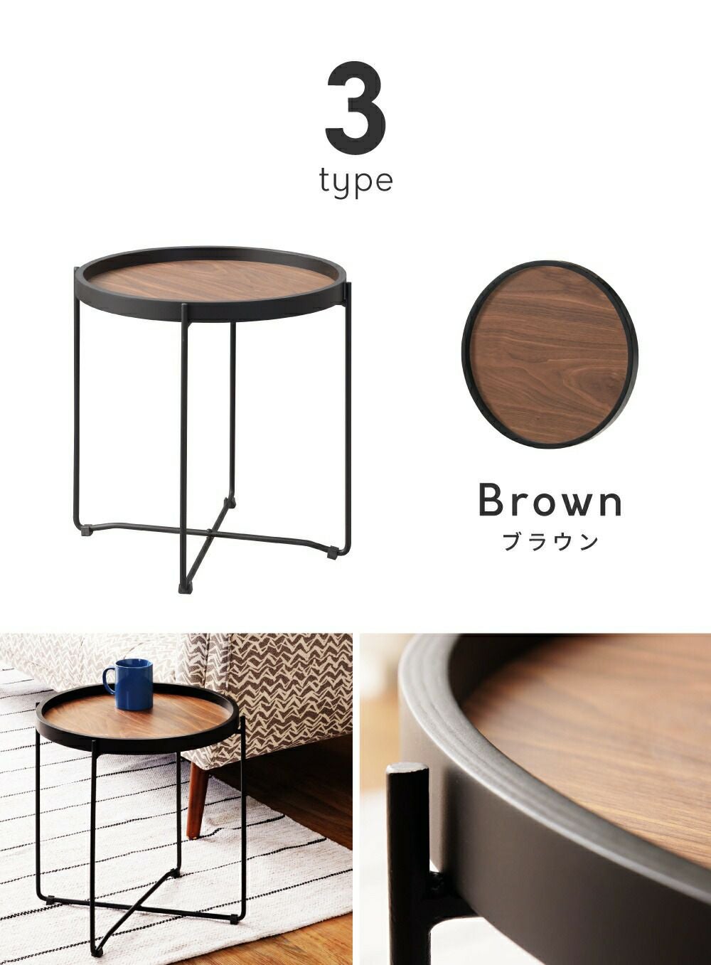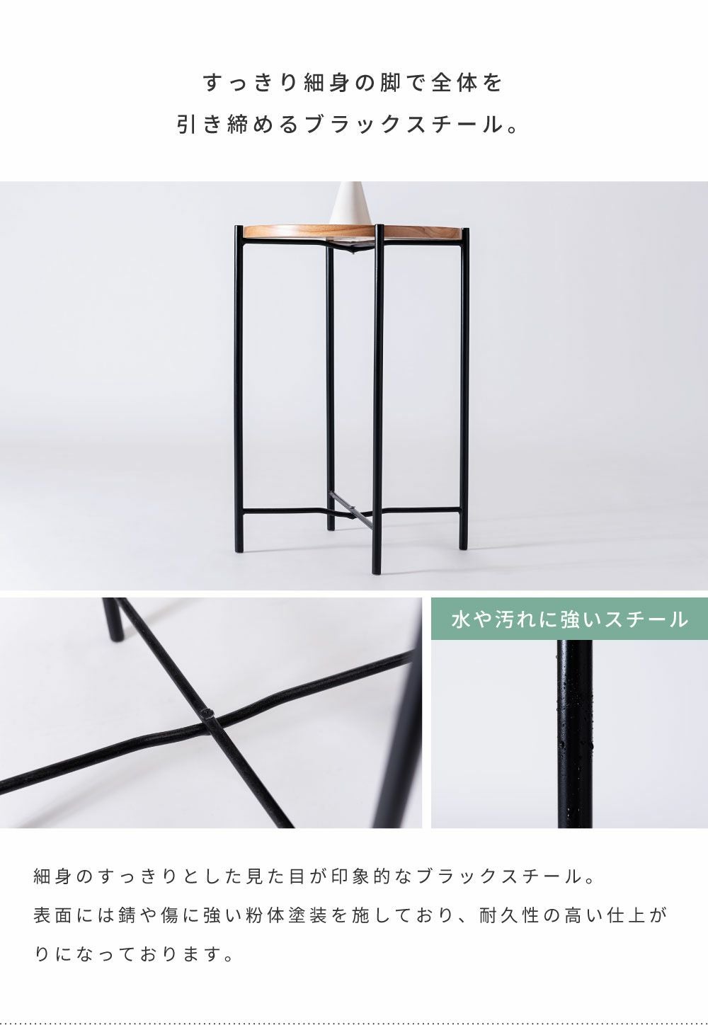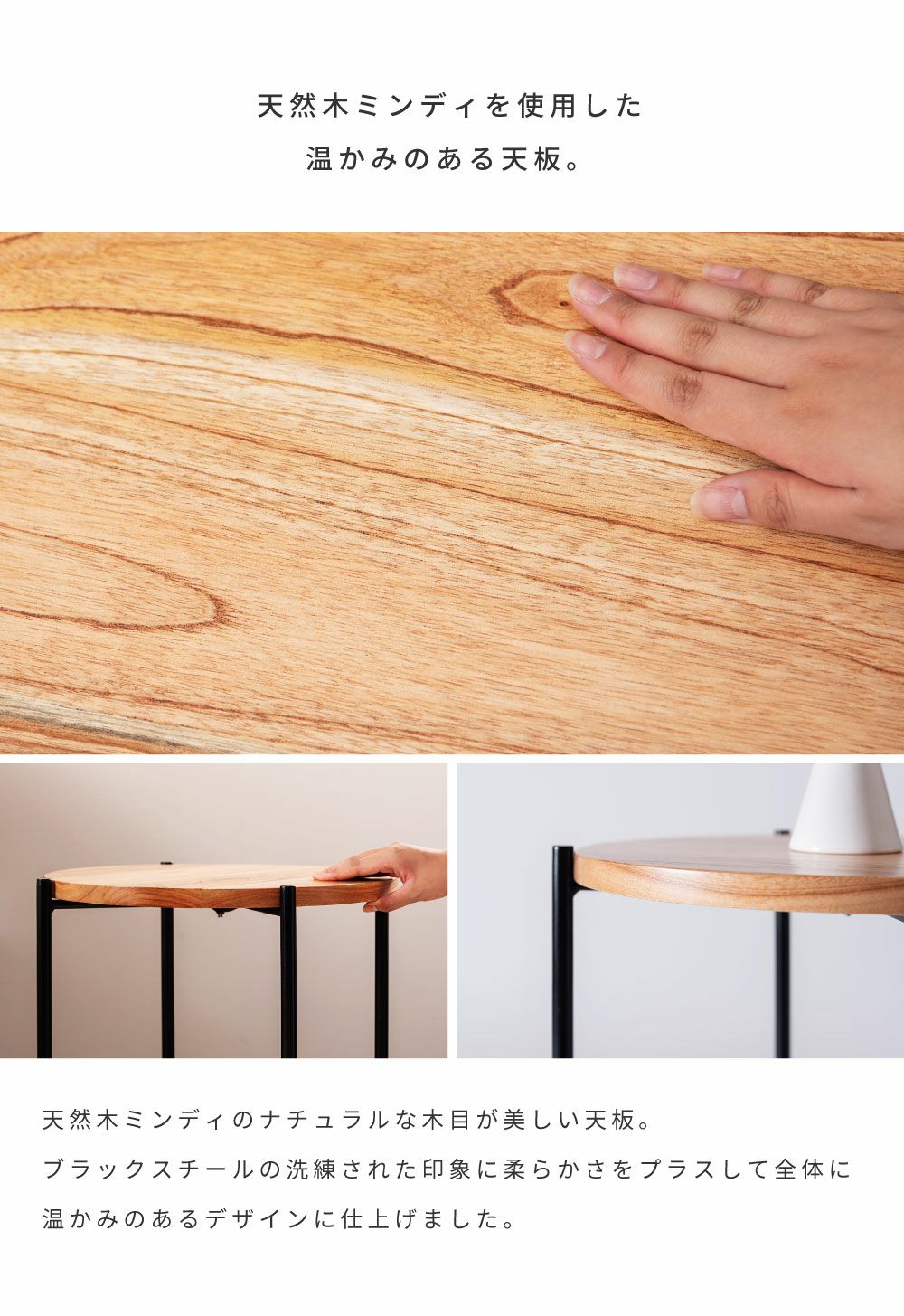 木目調天板とスチールで異素材MIX サイドテーブル ナイトテーブル 机 おしゃれ 丸テーブル 木目調 スチール|SALEN