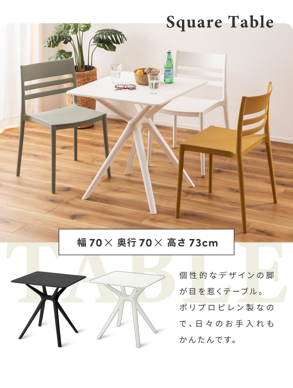 個性的な脚が魅力のテーブル テーブル ダイニングテーブル カフェテーブル 正方形 四角 ポリプロピレン|Ivan