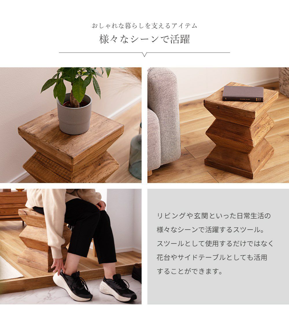 古木のぬくもり感じるスツール スツール チェア 椅子 イス いす おしゃれ サイドテーブル 簡易椅子|Hope