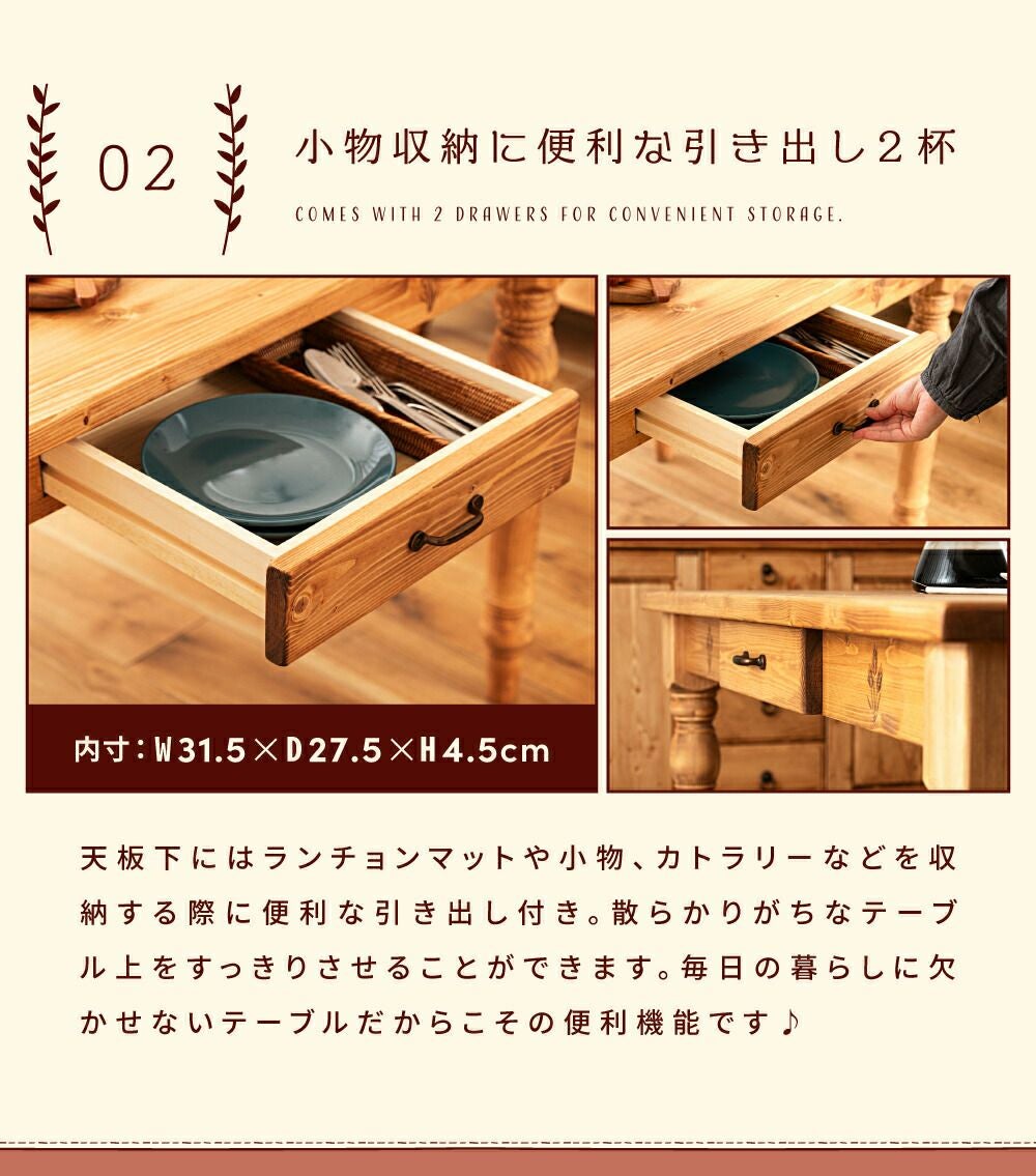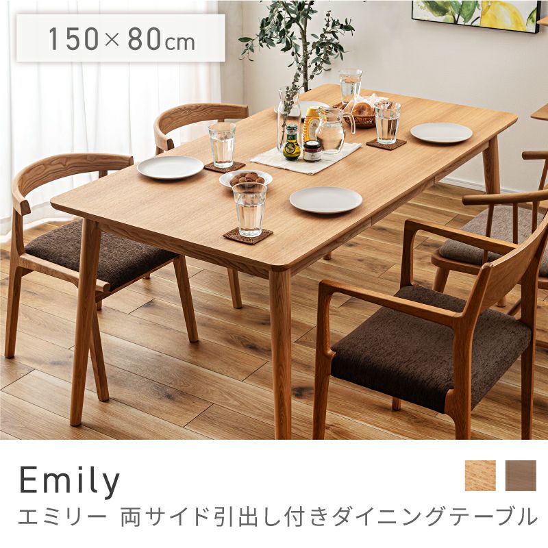 両サイド引き出し付き ダイニングテーブル テーブル 150 80 72 150cm幅 4人 4人掛け|Emily