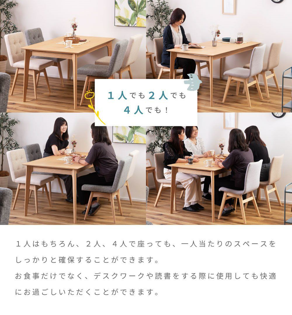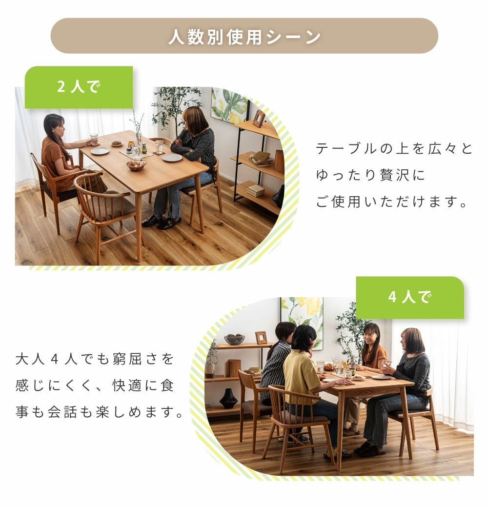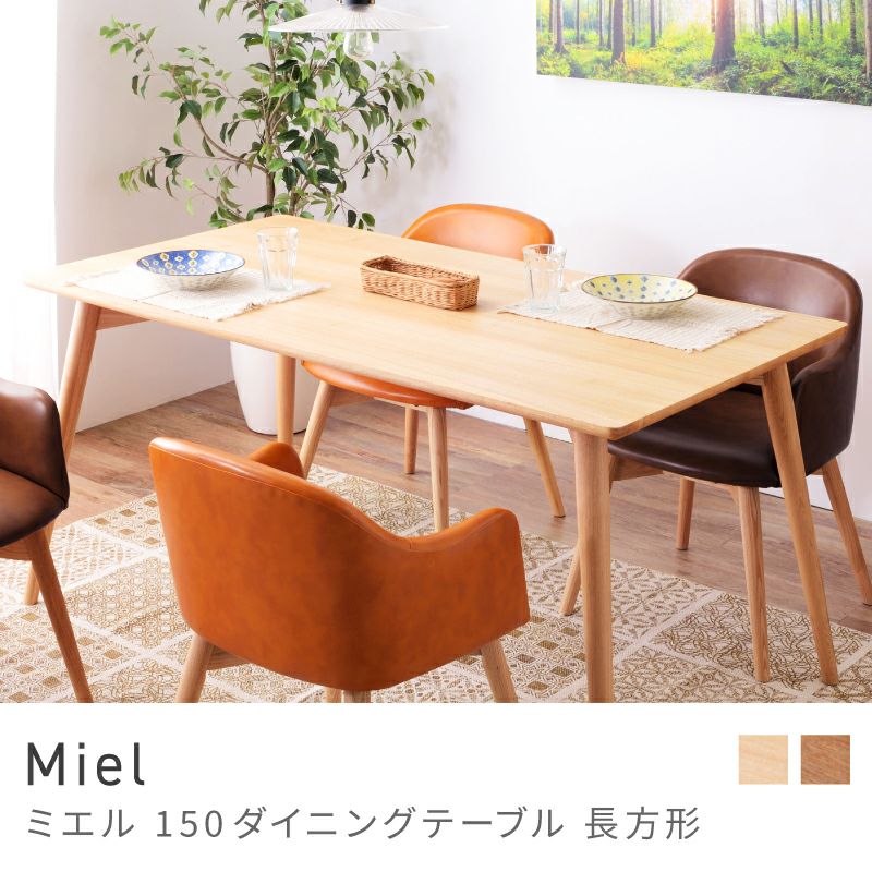 長く愛せるナチュラルデザイン ダイニングテーブル 4人掛け 幅150cm おしゃれ 食卓机 テーブル 木製|Miel