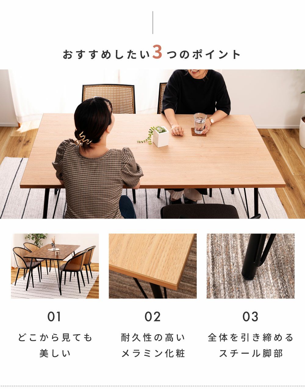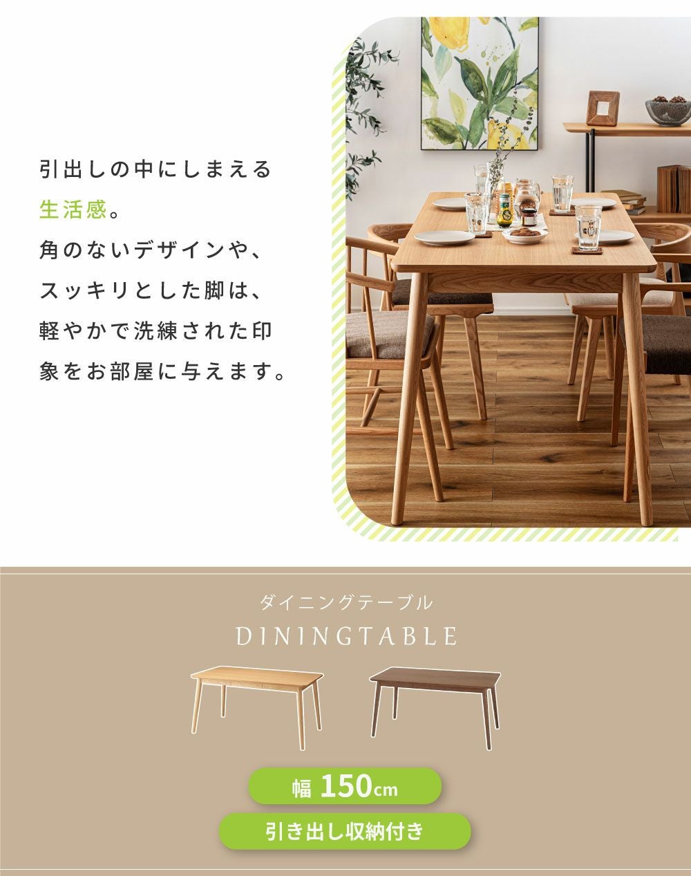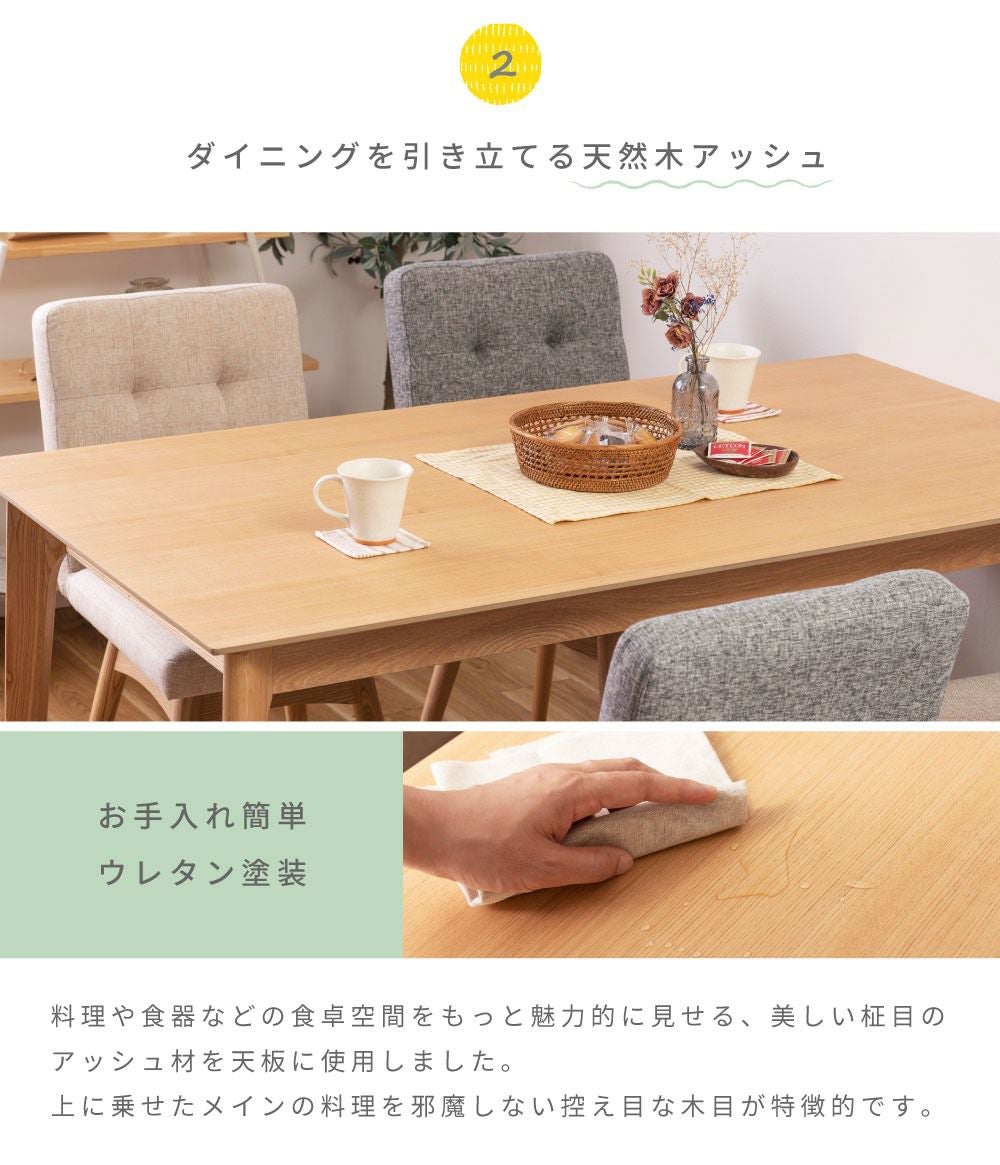 長く愛せるナチュラルデザイン ダイニングテーブル 4人掛け 幅150cm おしゃれ 食卓机 テーブル 木製|Miel