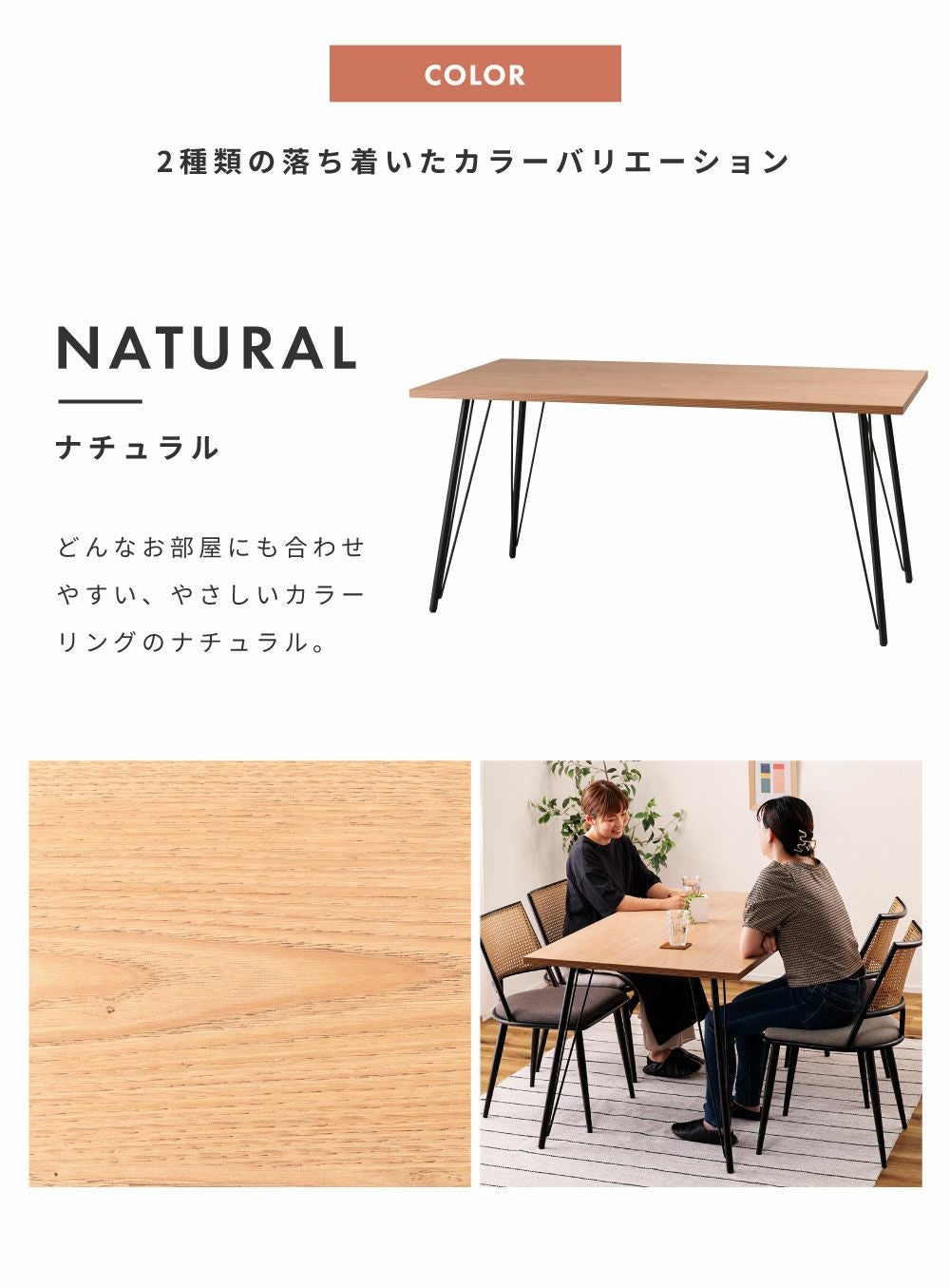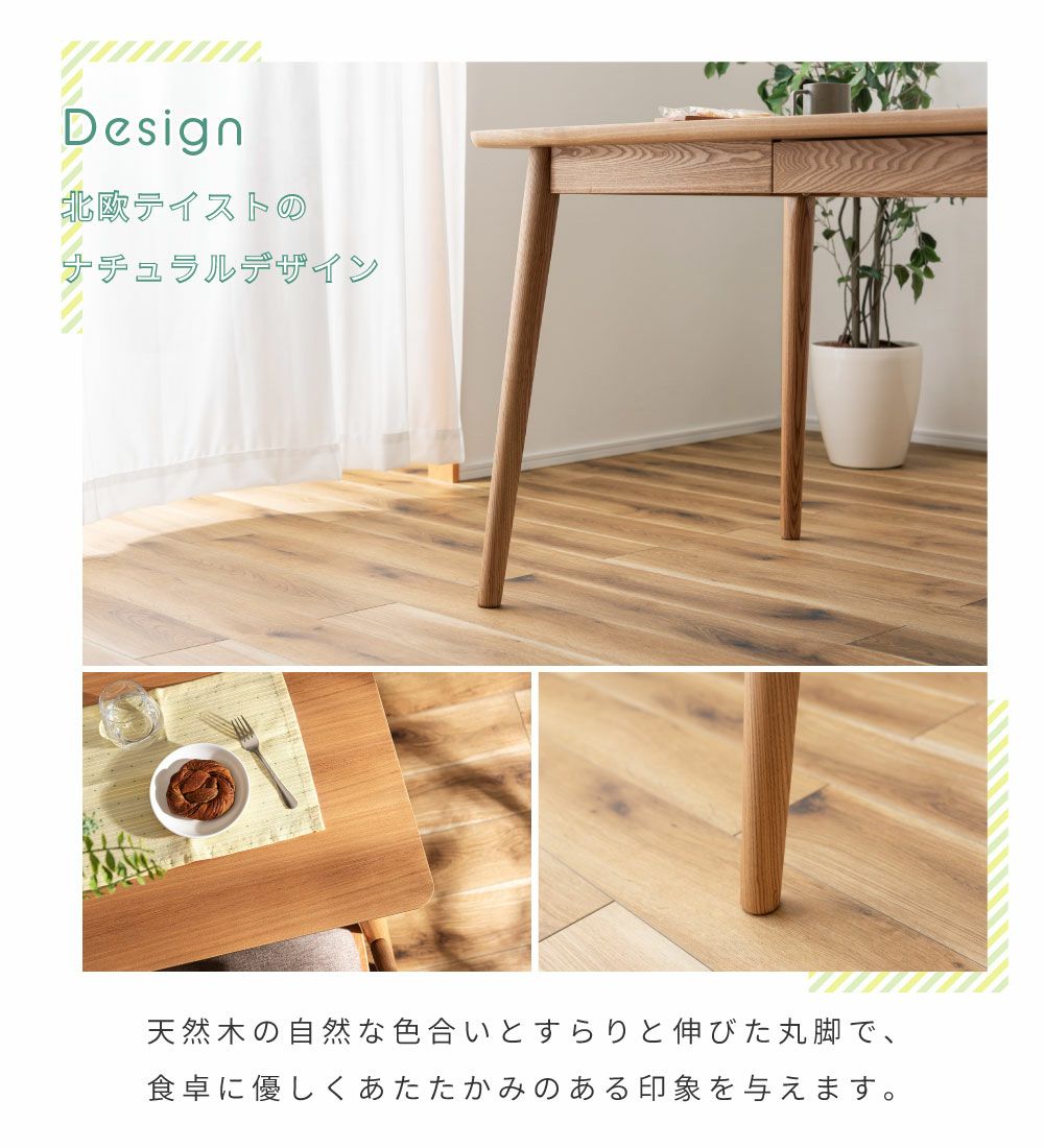 北欧風ナチュラルテーブル ダイニングテーブル テーブル おしゃれ 北欧 シンプル 食卓机 木製 天然木|Elle