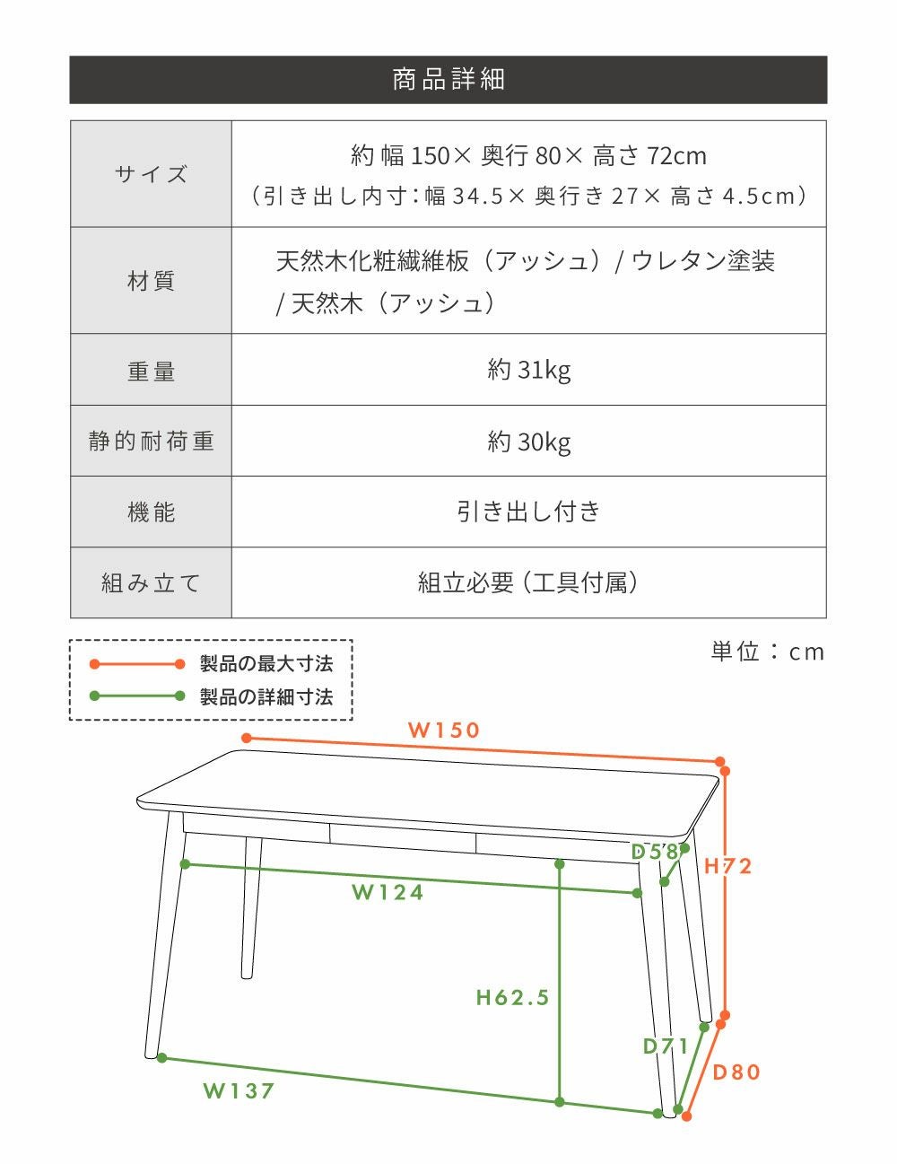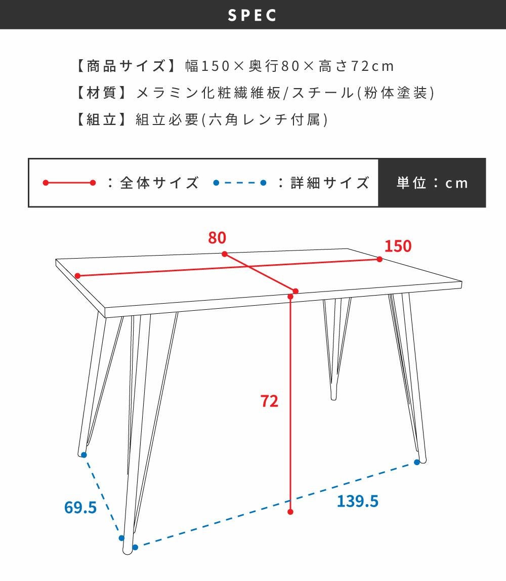150cmワイドの快適ダイニング ダイニングテーブル おしゃれ 北欧 シンプル 食卓机 150×80|Axel