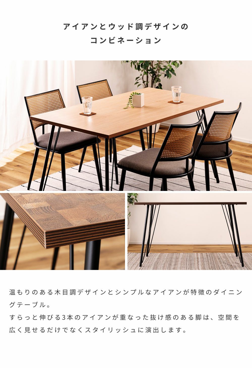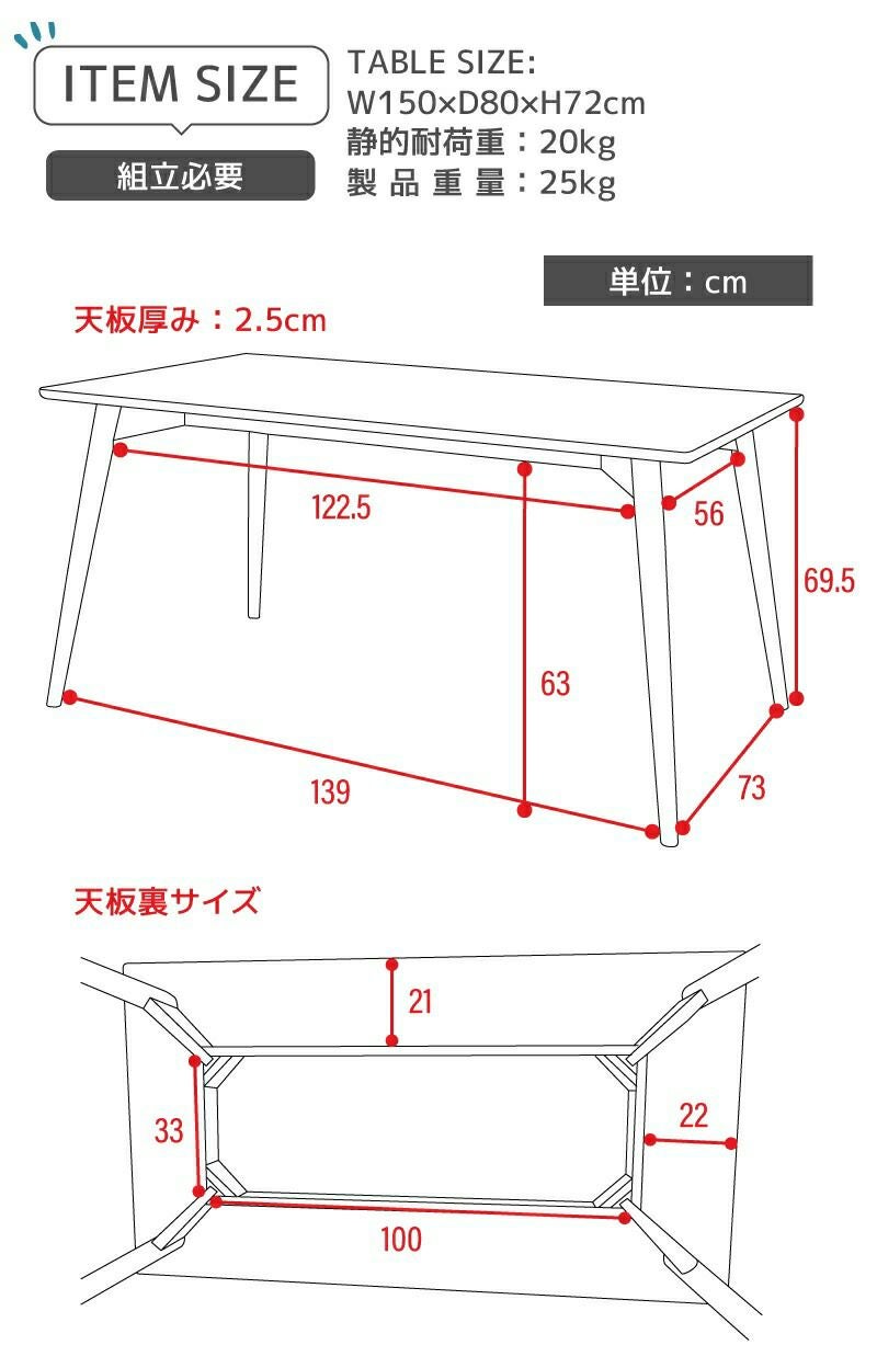 北欧テイストのシンプルデザイン ダイニングテーブル 幅150cm 奥行80cm 食卓机 デスク 4人掛け 新生活 一人暮らし 模様替え|Arunda