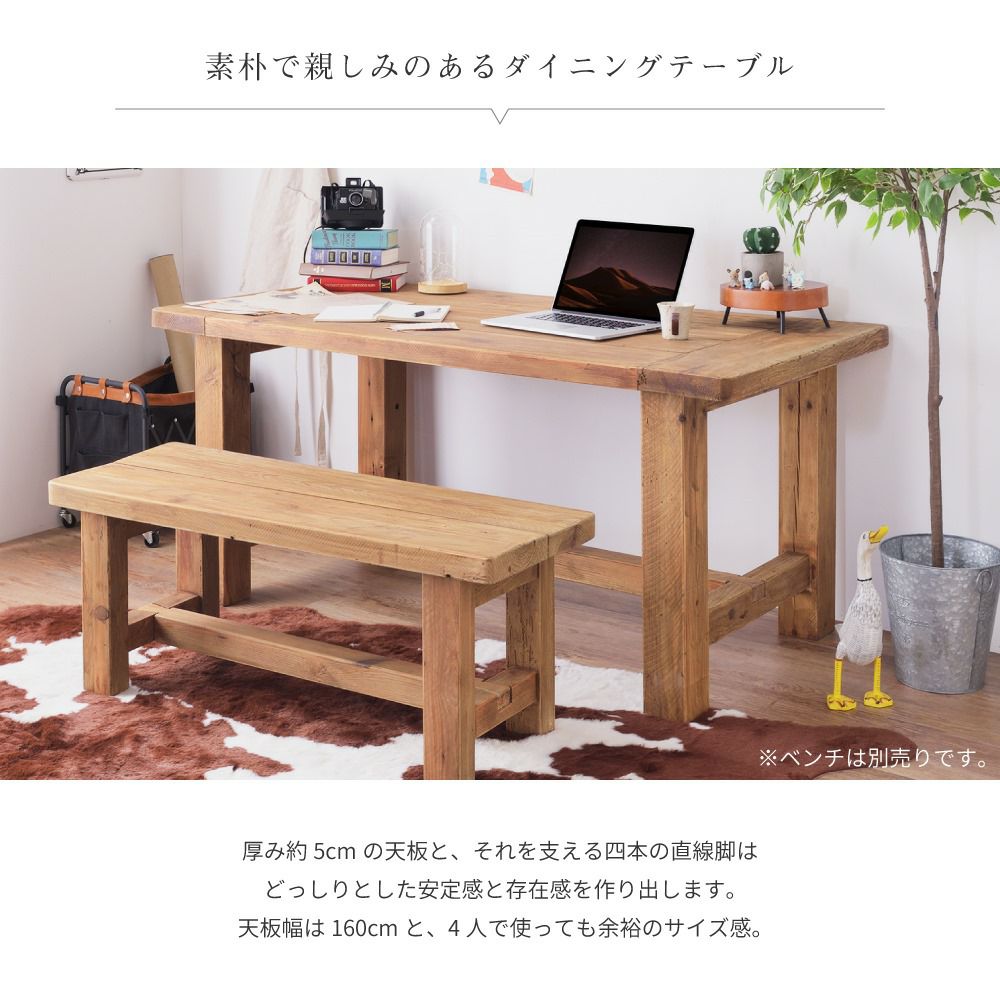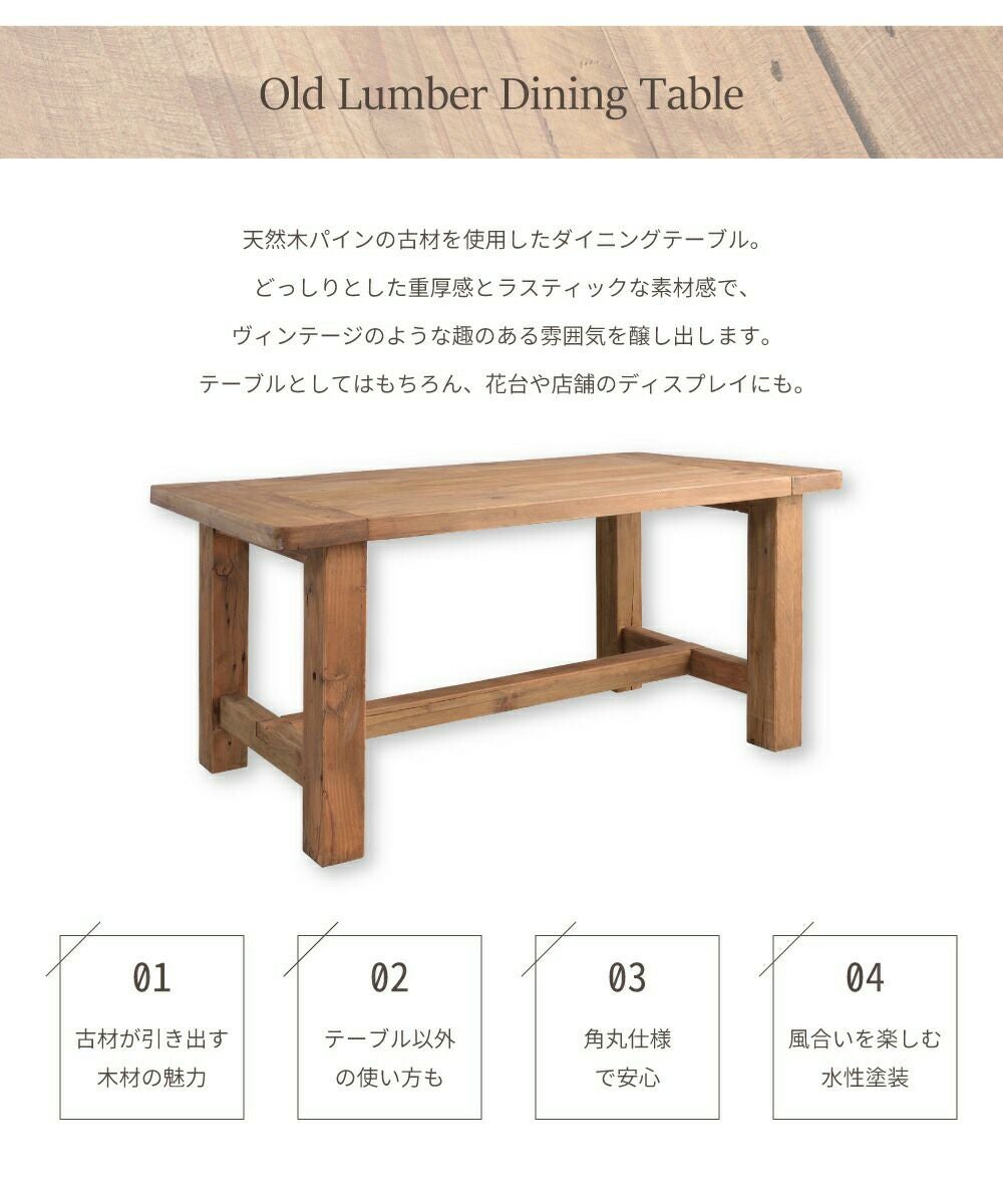 天然木の古材を使用したダイニングテーブル ダイニングテーブル テーブル 長方形 4人掛け 四人掛け おしゃれ 木製 食卓|Arte