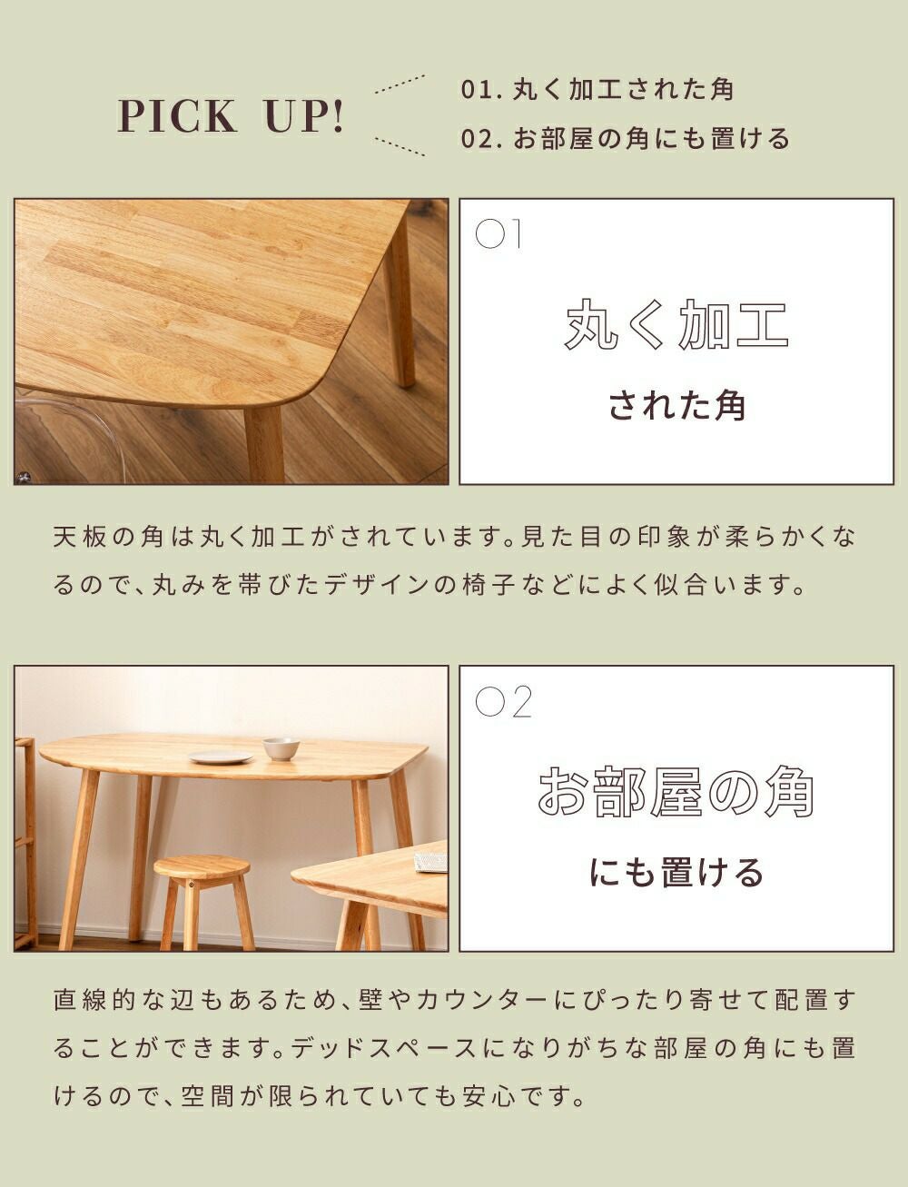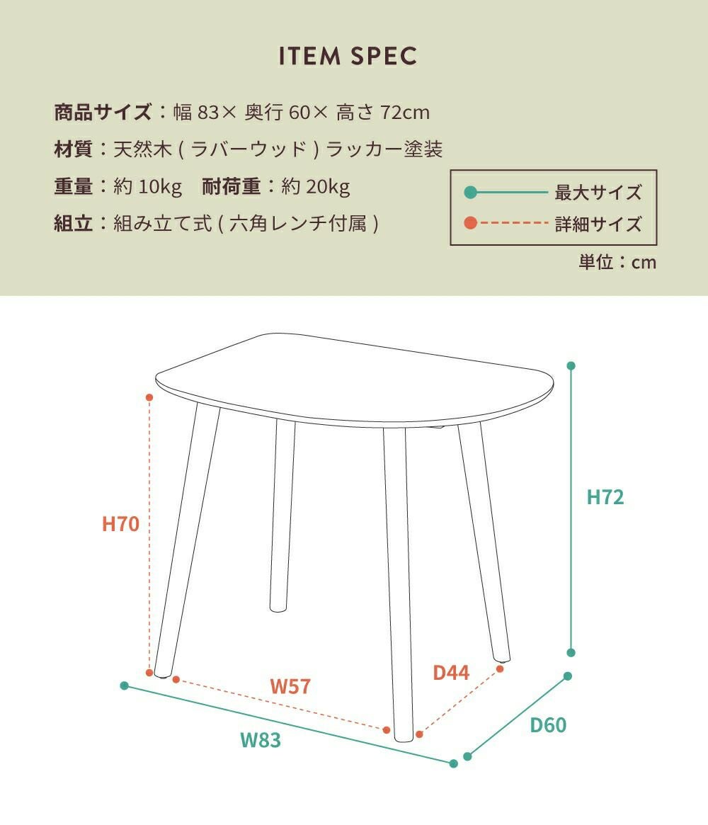 シンプルながらもユニークな形の天板 ダイニングテーブル 高さ72cm おしゃれ 北欧 壁付け 壁 つけ 個性的|YORU