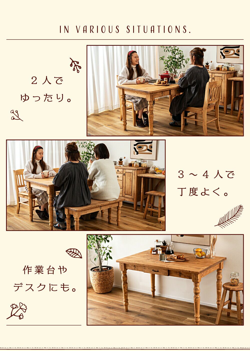 温もり溢れるダイニングテーブル ダイニングテーブル テーブル 机 おしゃれ オイル仕上げ カントリー|CARMELA