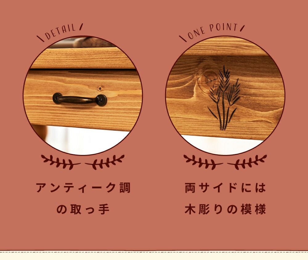 自然美を活かした木目キャビネット キャビネット 幅80cm おしゃれ 食器棚 引き出し 4杯 キッチン収納|TIM