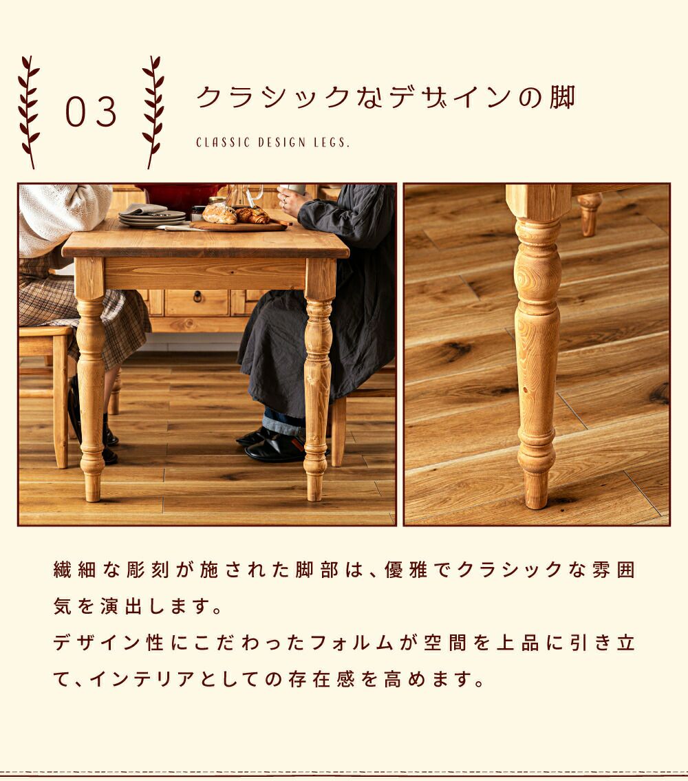 クラシックデザインでお部屋を彩る ダイニングテーブル 食卓机 テーブル 2人用 2人掛け 二人 おしゃれ|Iris