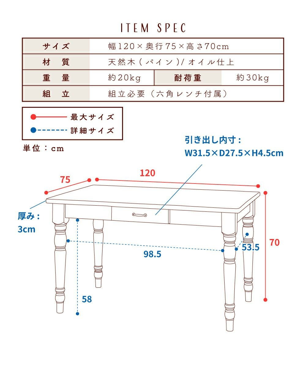 素朴さの中に個性が光るデザイン デスク 高さ70cm おしゃれ 机 テーブル アンティーク ナチュラル 木製 新生活 一人暮らし 模様替え|CARMELA