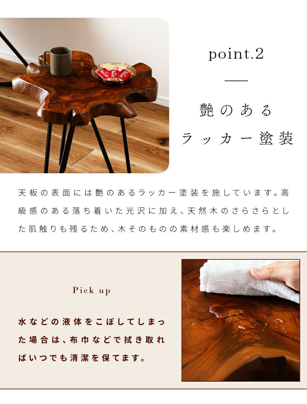 パイン古材の脚が上品な仕上り ローテーブル 幅90cm センターテーブル コーヒーテーブル 丸テーブル|Hugo