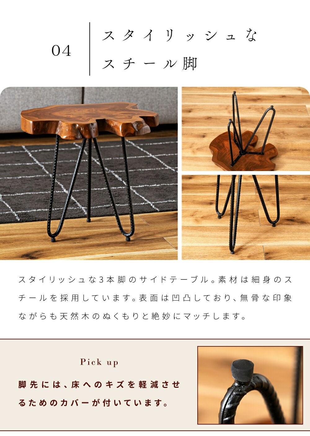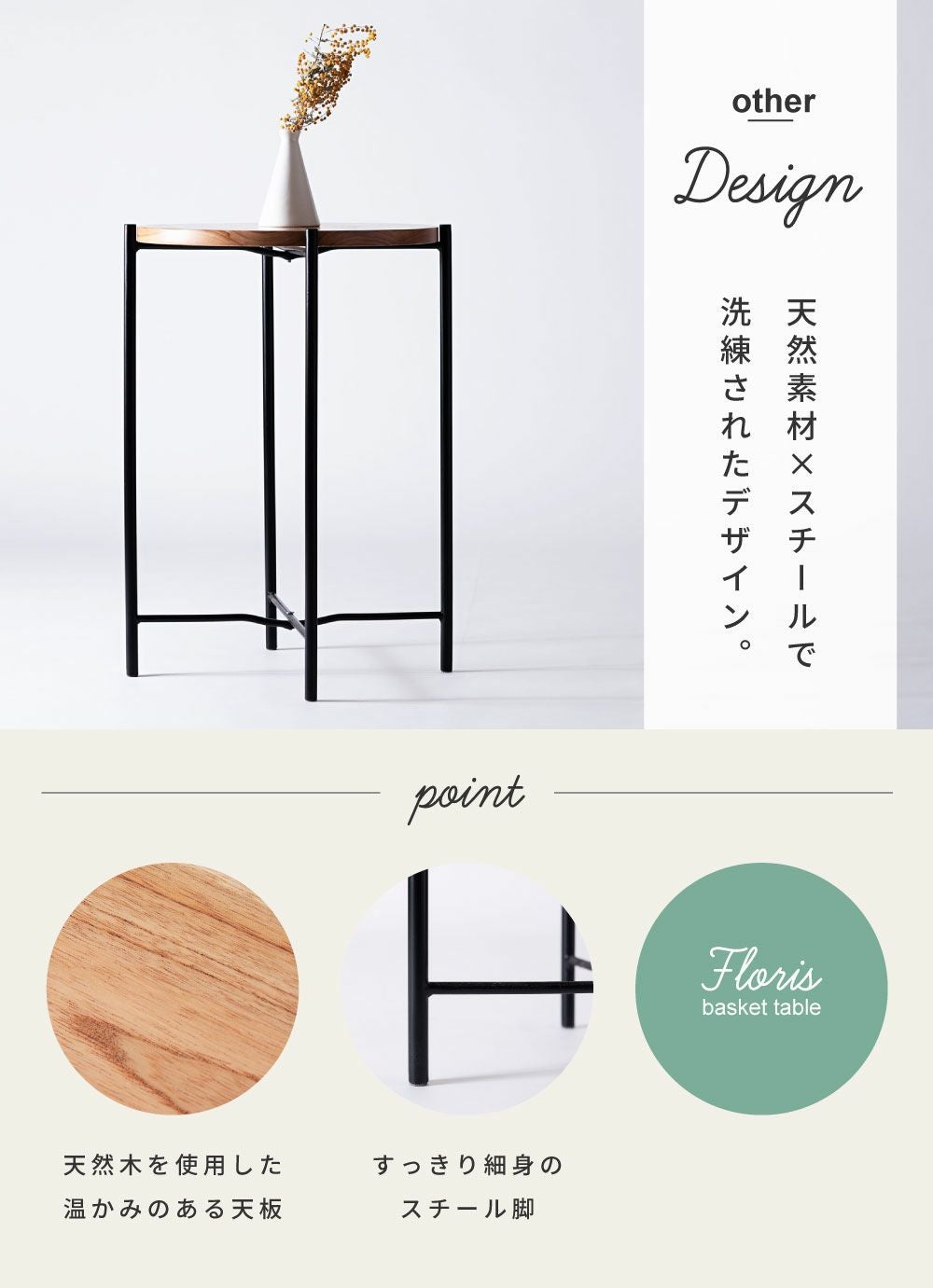 異素材が織りなす上質な空間 サイドテーブル ナイトテーブル 丸テーブル 机 おしゃれ 木製 天然木|Tess