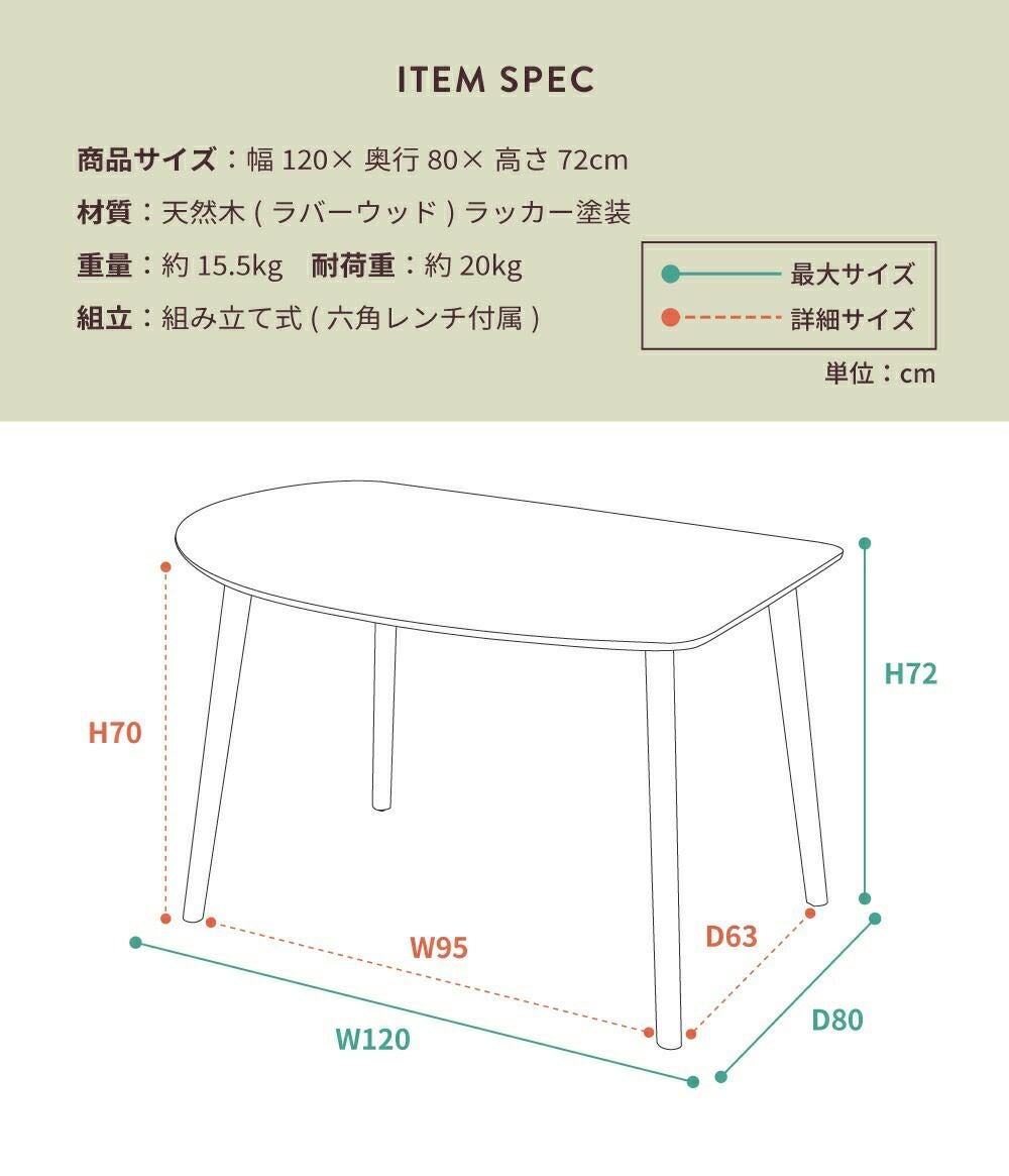 シンプルながらもユニークな形の天板 ダイニングテーブル 高さ72cm 横幅120cm おしゃれ 北欧 壁付け 壁|YUKI