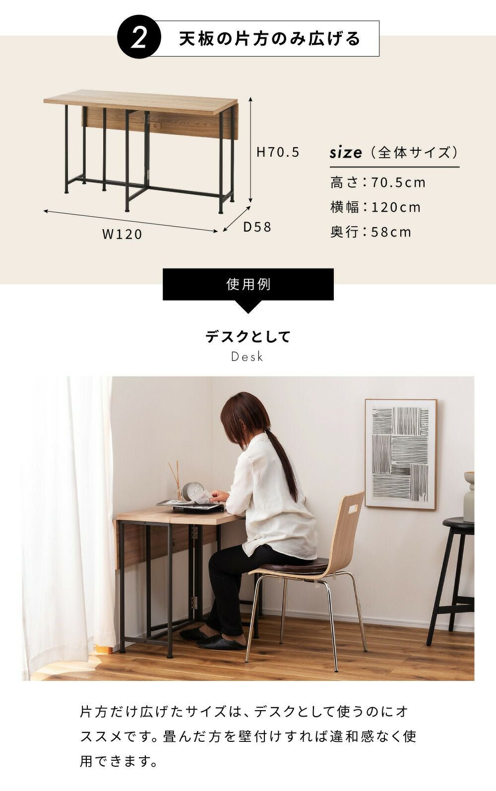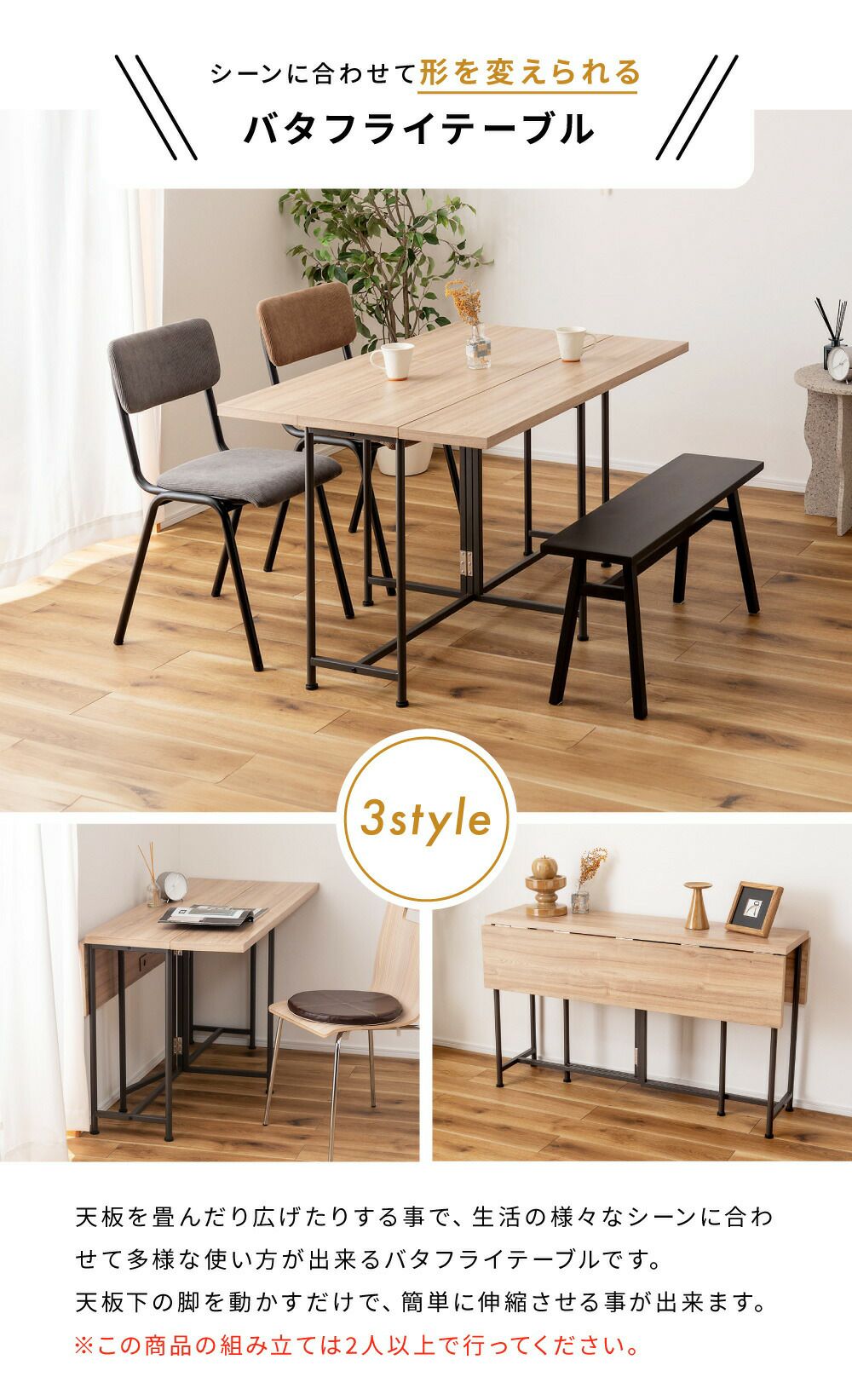 使い方いろいろ、バタフライテーブル ダイニングテーブル 伸縮 伸縮式 折りたたみ おしゃれ 省スペース デスク|DREA