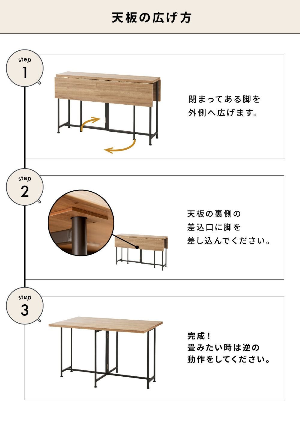 使いたいときだけ広げられる魅力 折りたたみテーブル 折り畳みテーブル 白 高さ調節 高さ 変えられる|NYVIA