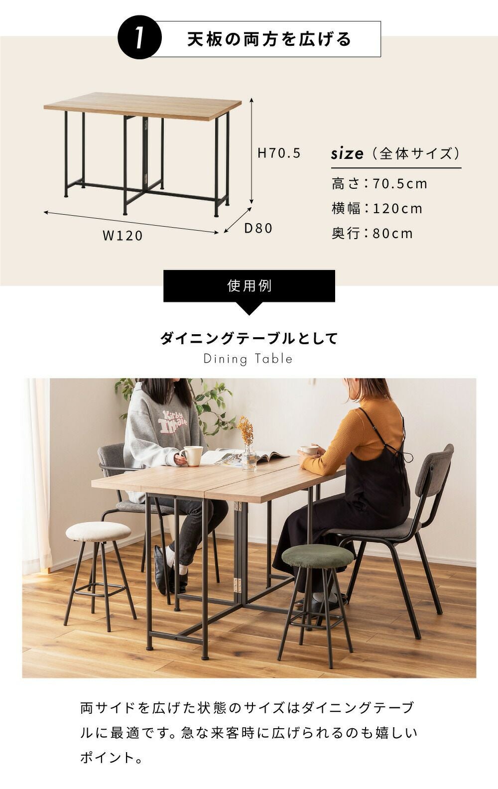シーンで使い分け伸縮テーブル ダイニングテーブル 幅120cm 伸縮 2人用 4人掛け 二人 掛け 四人|SALME