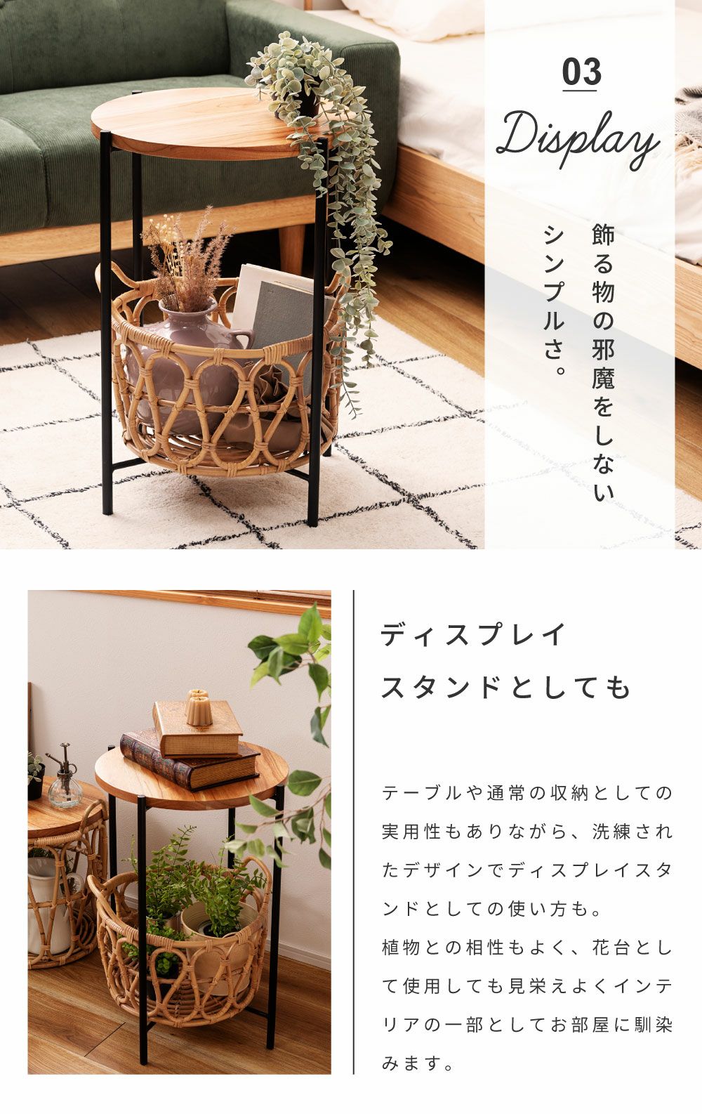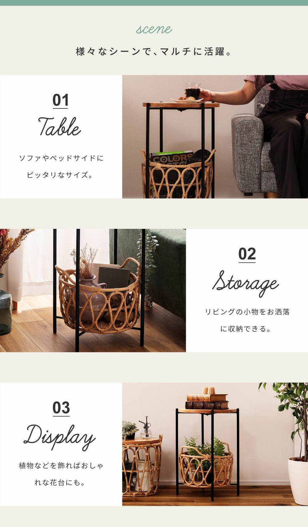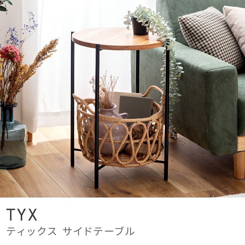 高いデザイン性で、お洒落な空間作り サイドテーブル テーブル バスケット 収納 ラタン かご 籐 天然木 木製|TYX