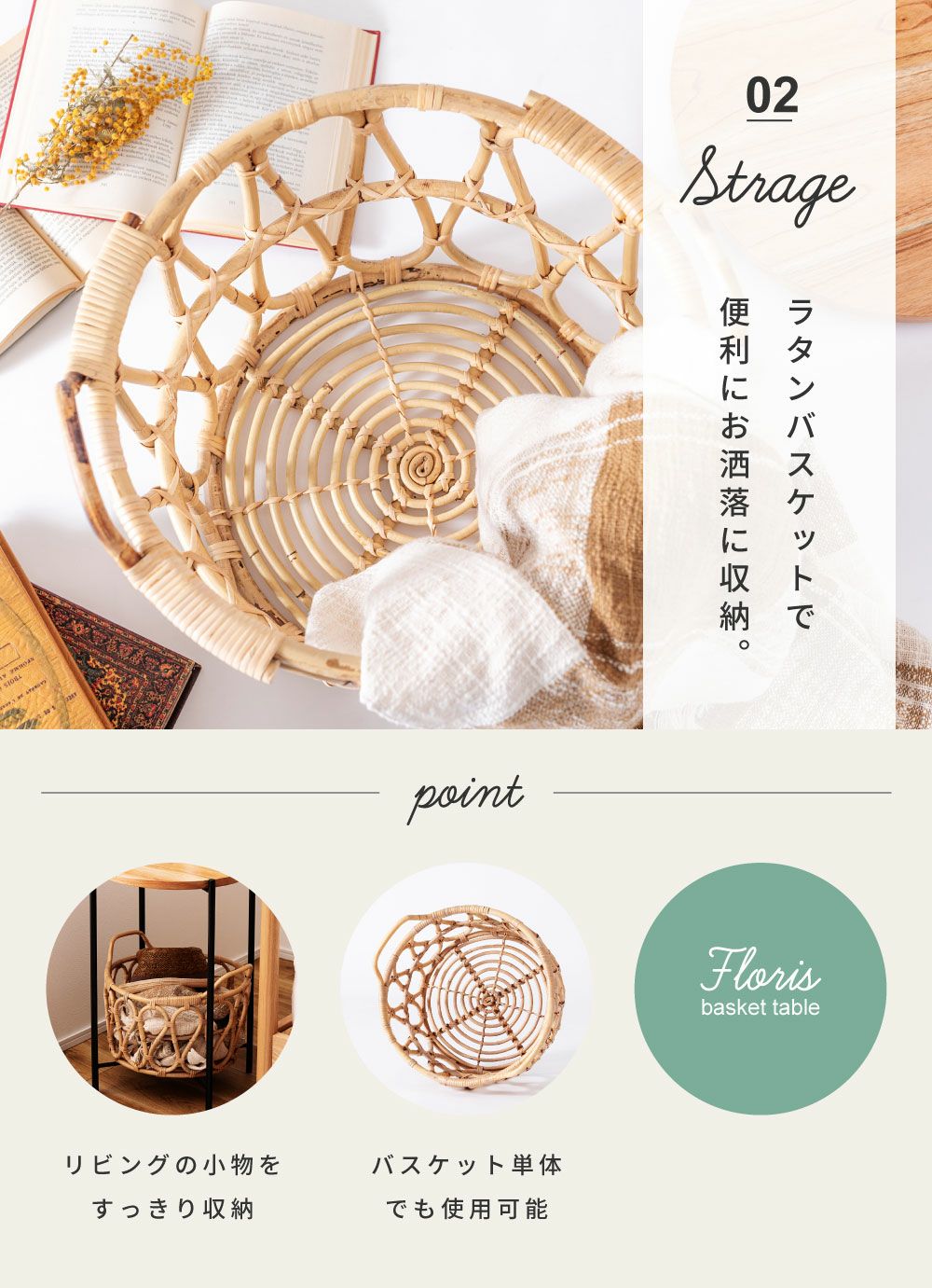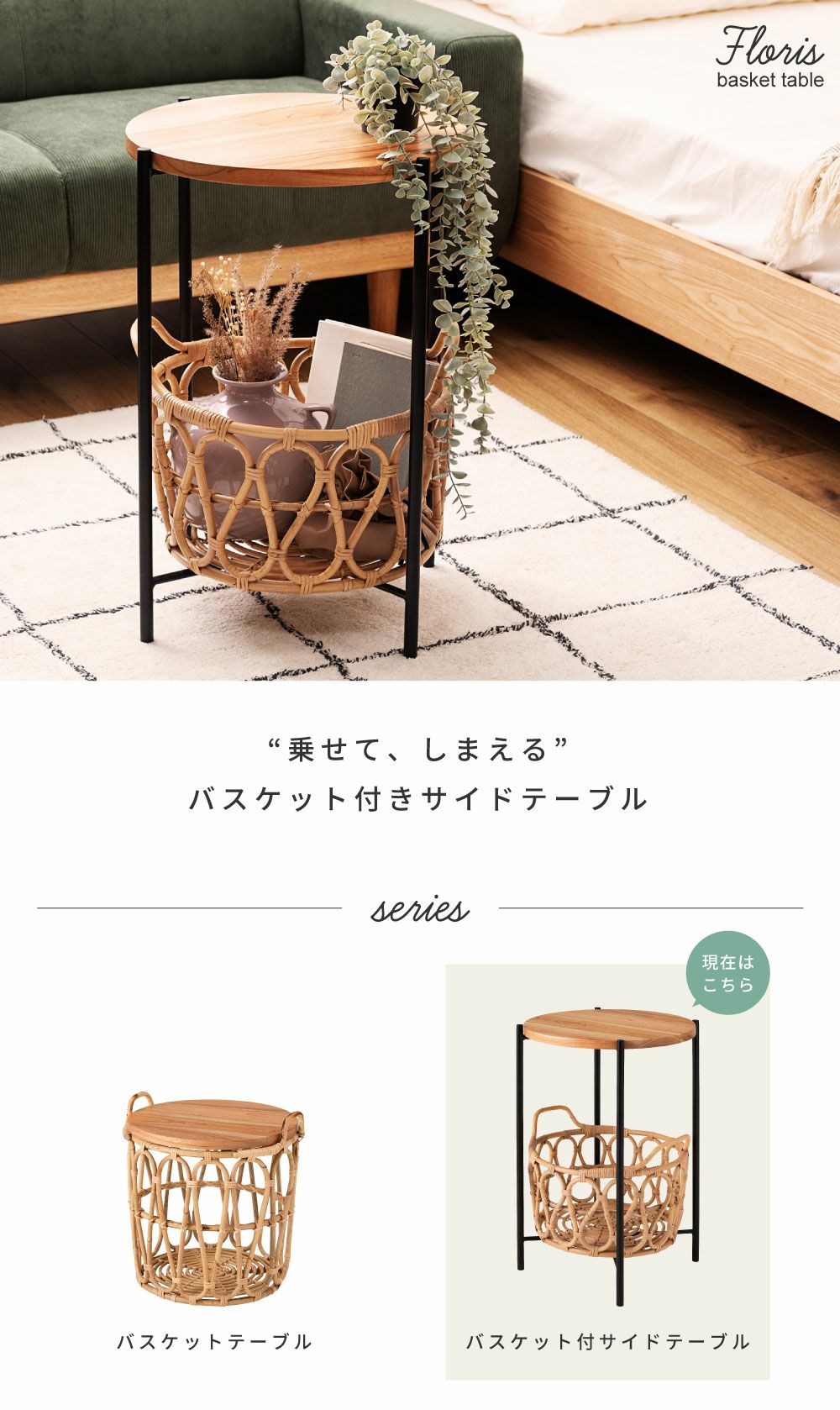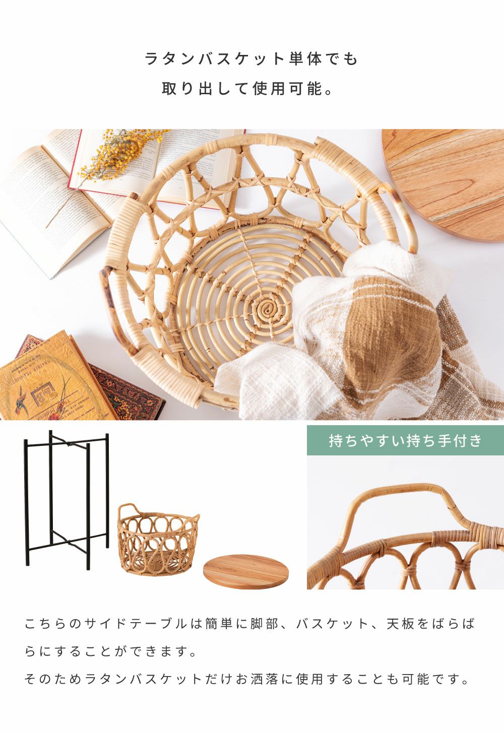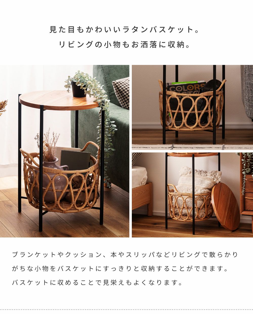 テーブルも収納もこれひとつで サイドテーブル テーブル バスケットテーブル バスケット 収納 ラタン かご|TYNA