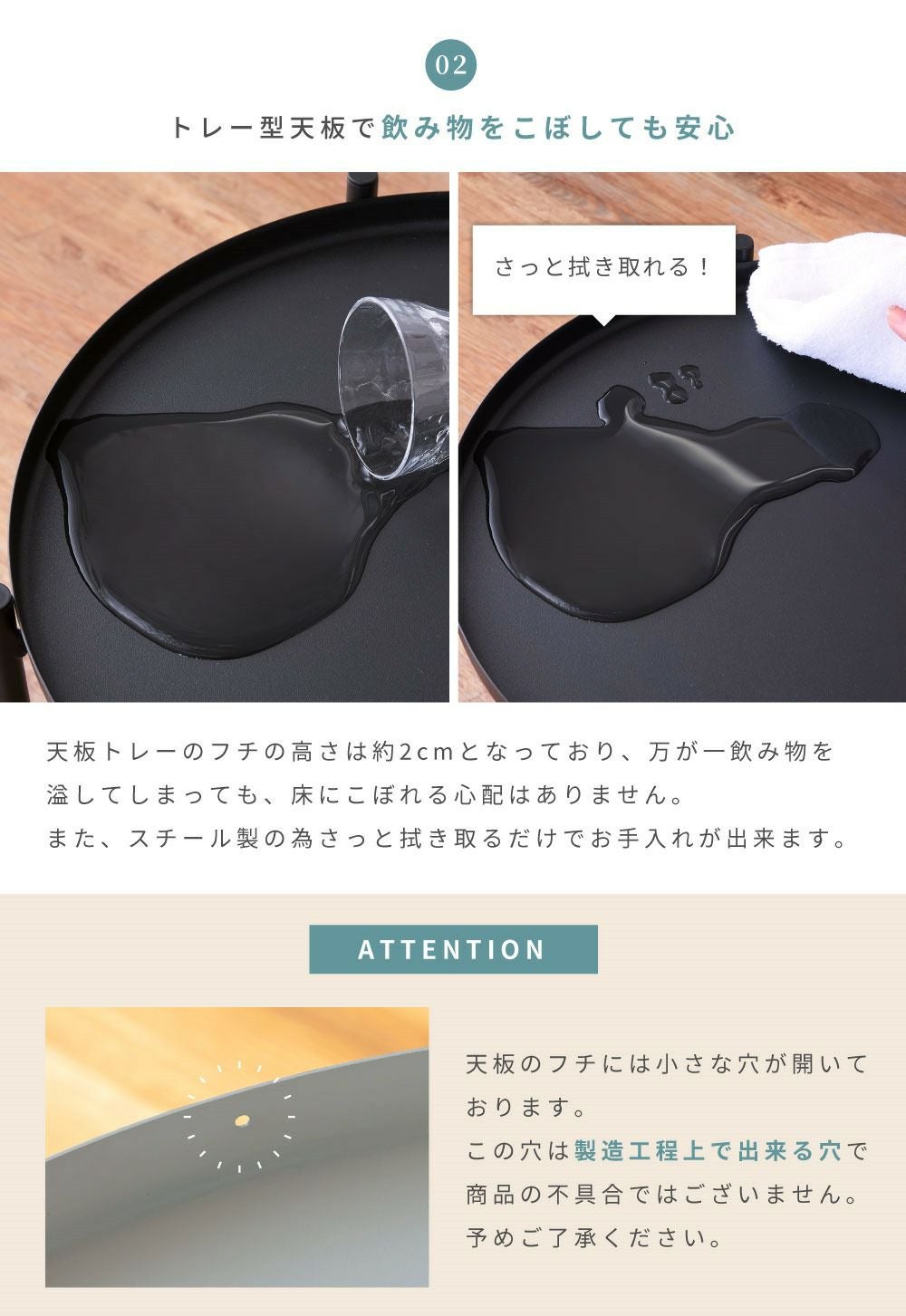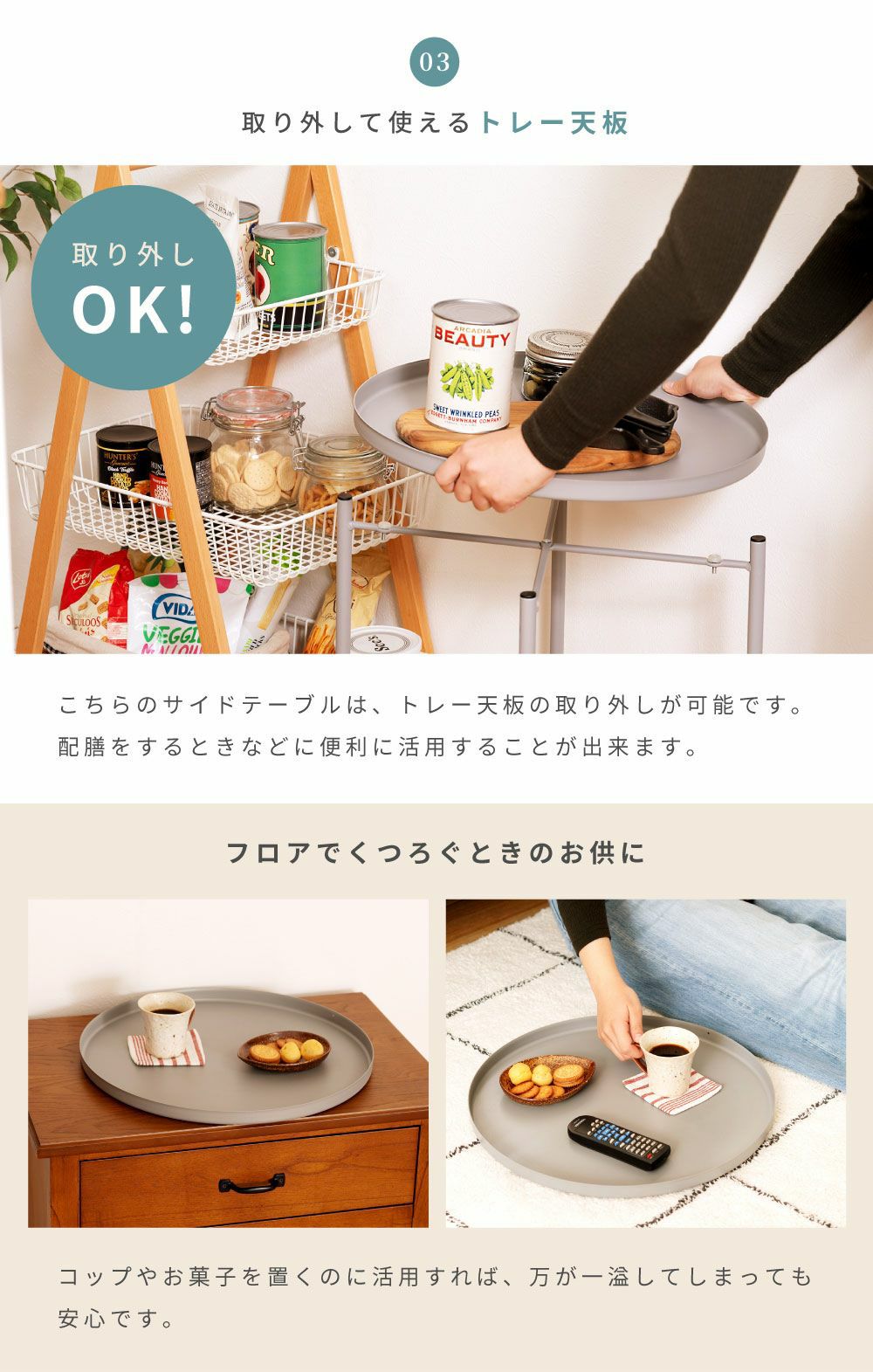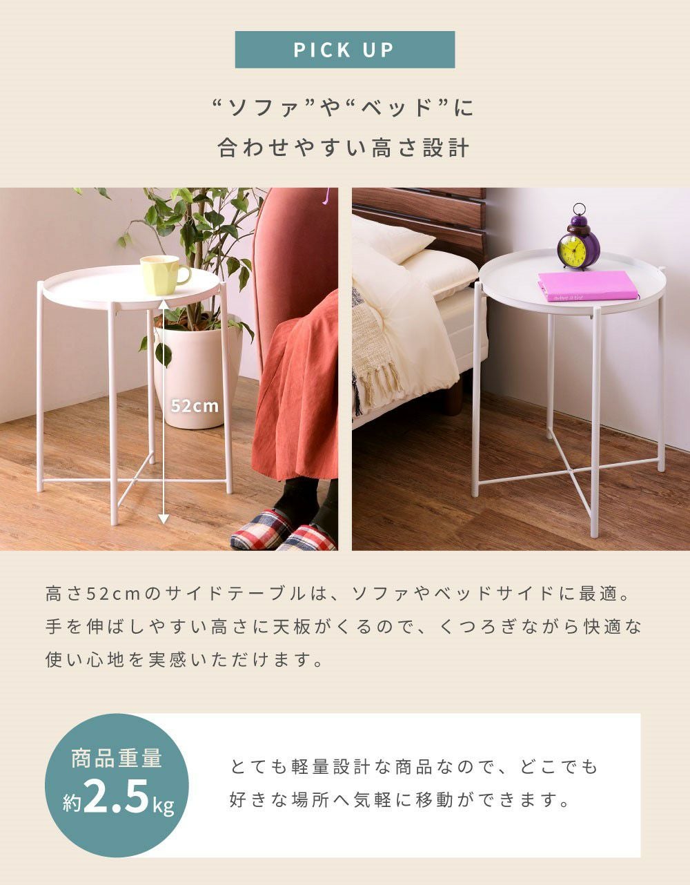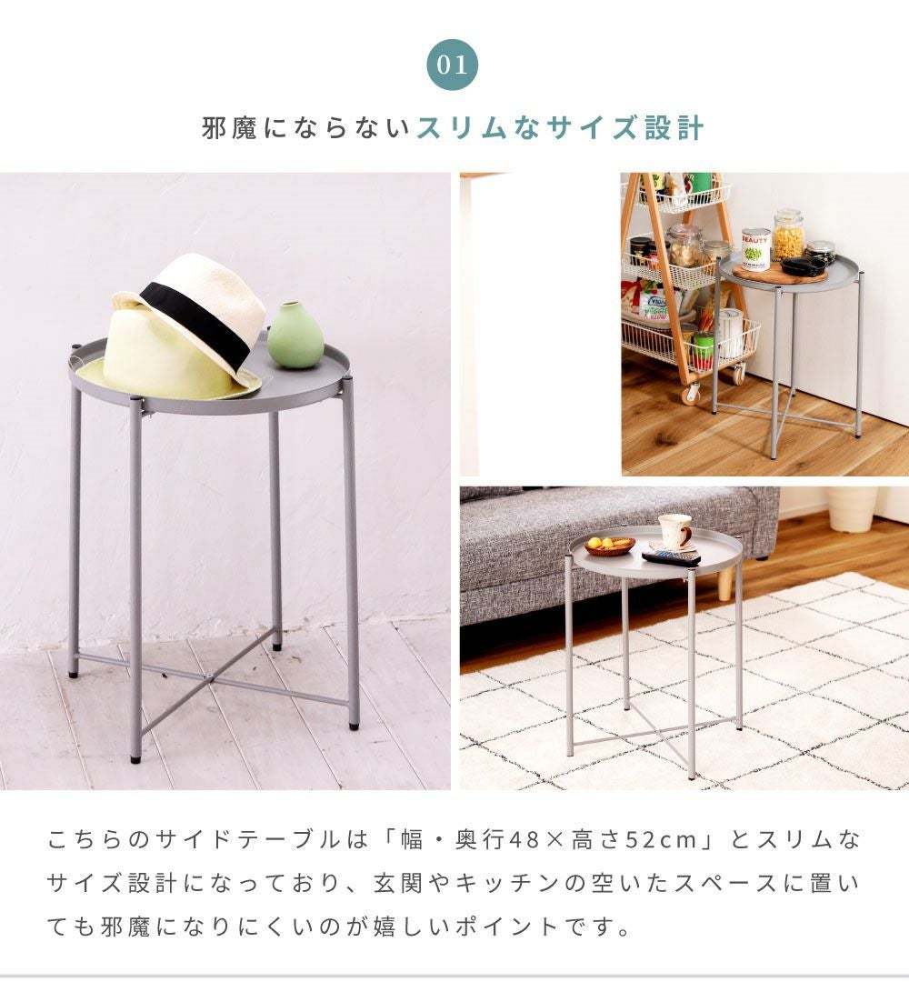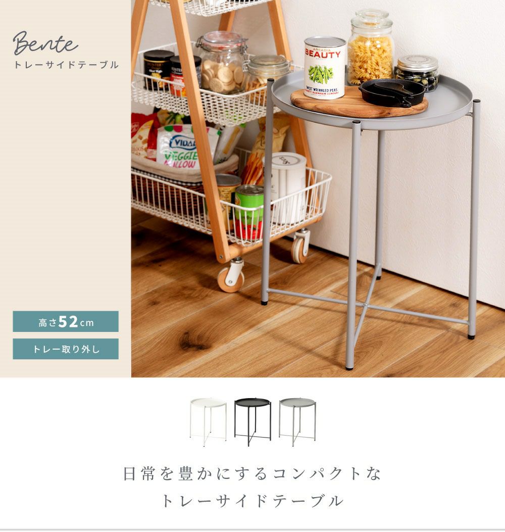 トレー天板は取り外し可能。配膳に便利 サイドテーブル 高さ52cm トレーテーブル ナイトテーブル ミニテーブル|ZALE
