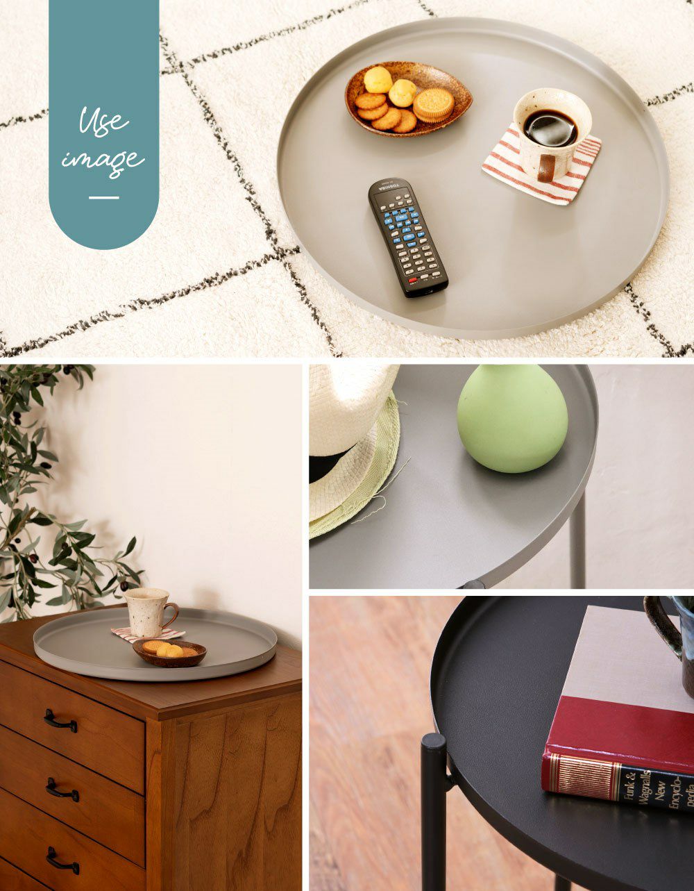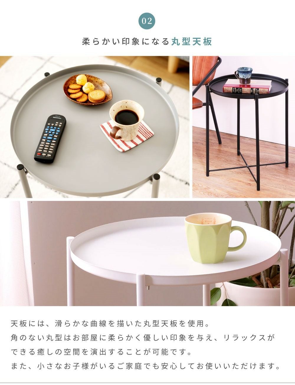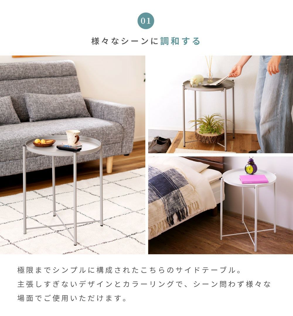 トレー型の天板の円形テーブル サイドテーブル 丸テーブル プラスチック ポリプロピレン|XERIL