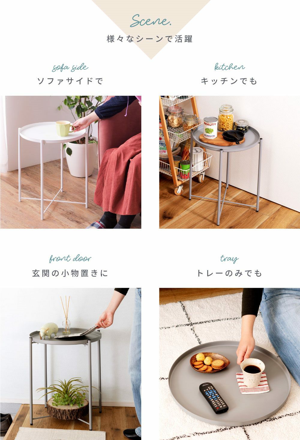 サッと取り出して、サッと使える 折りたたみテーブル 高さ70cm ミニテーブル キャスター付き サイドテーブル|PARIN