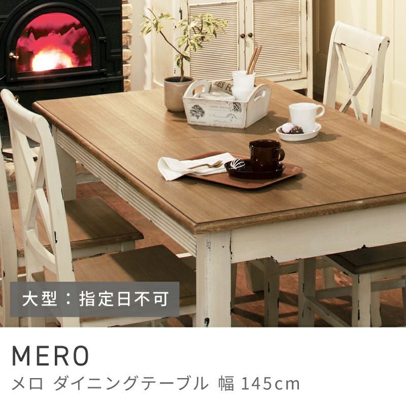 アンティーク調のダイニングテーブル ダイニングテーブル 幅145cm 4人掛け テーブル 白 机 ダイニング|MERO