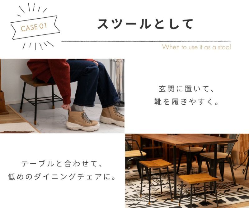 天然木×スチールの洗練チェア スツール 木製 丸 高さ45cm 椅子 チェア 玄関 アンティーク おしゃれ 高め|BONA