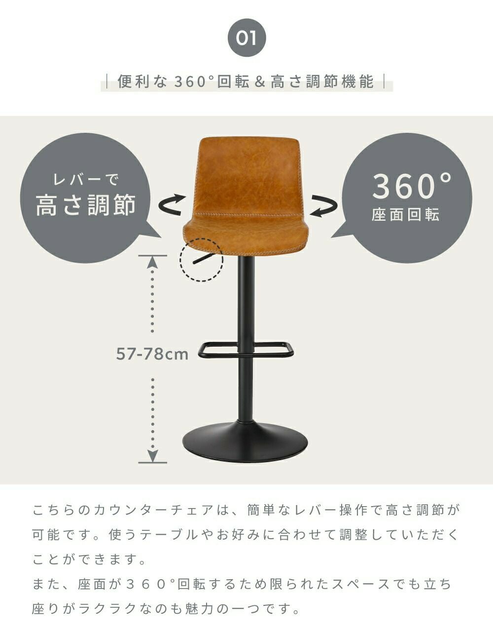 他の画像を見る 端のステッチがお洒落なハイスツール カウンターチェア 360度 回転 昇降 高さ調節 ハイスツール スツール 椅子|EMBER 送料無料 ¥ 13,464 税込 (0) お気に入りに登録する
