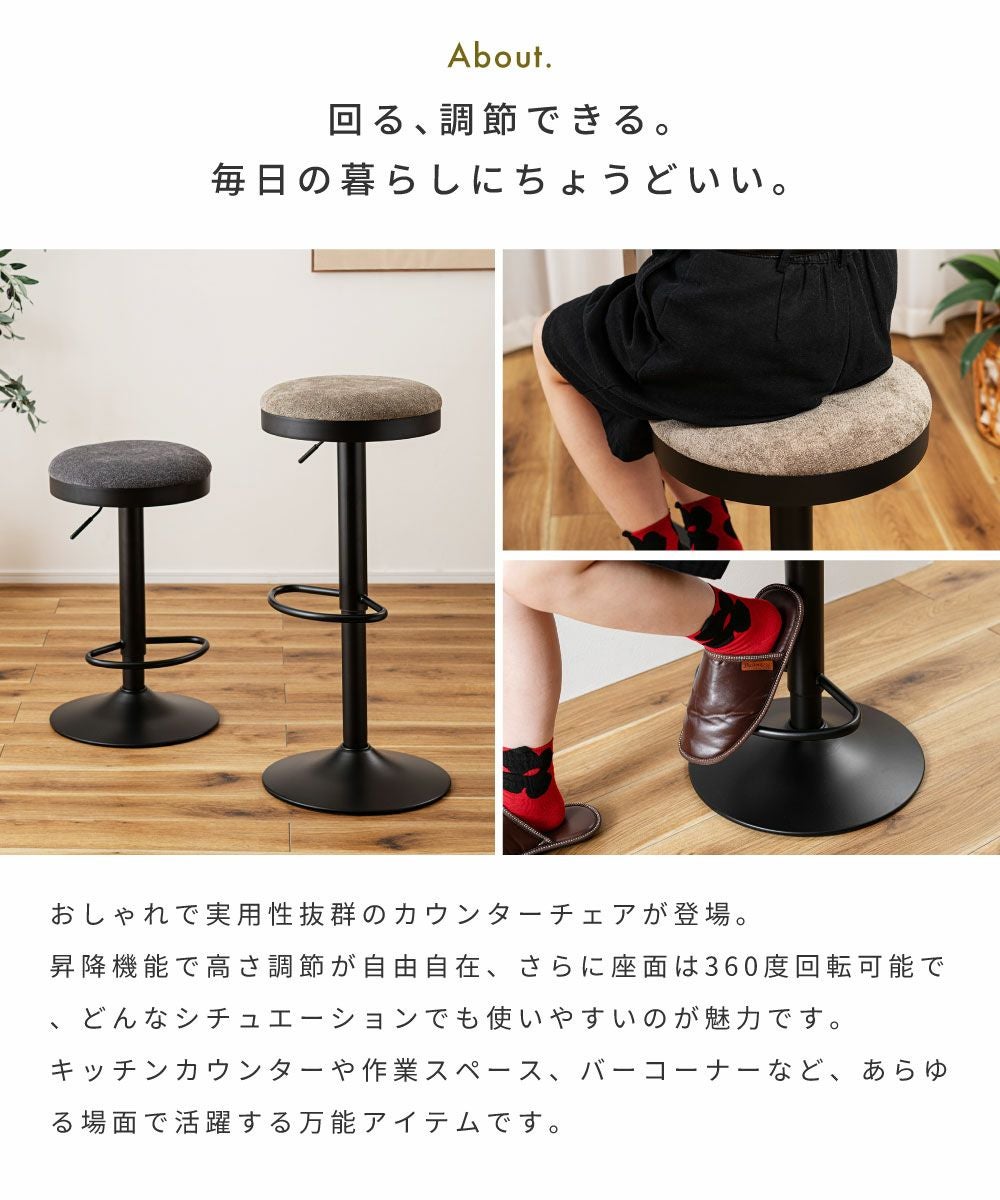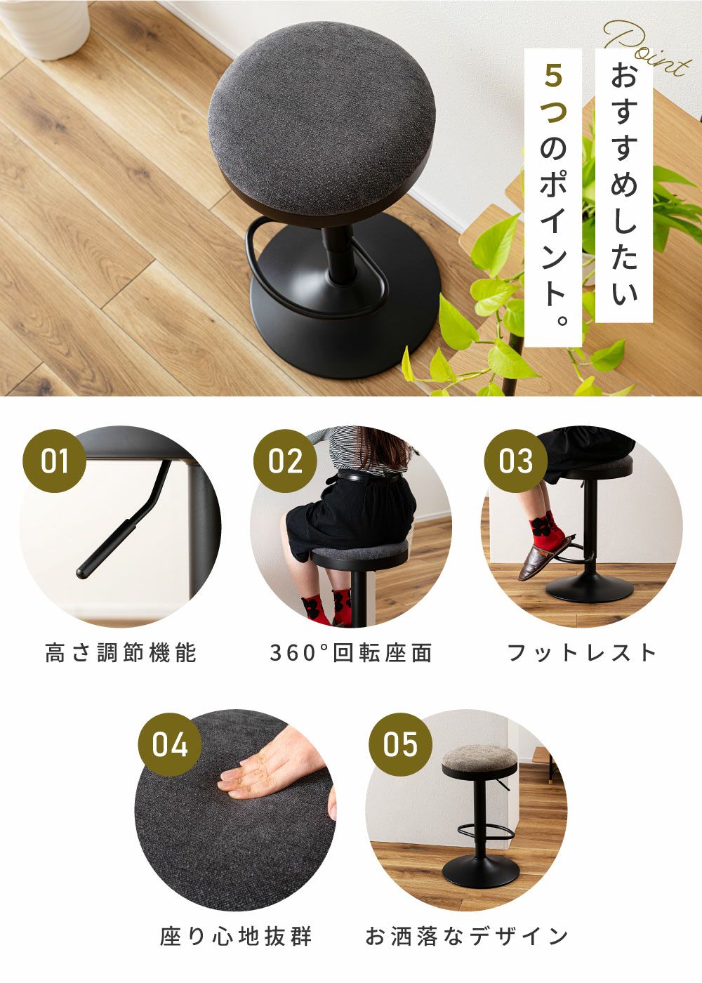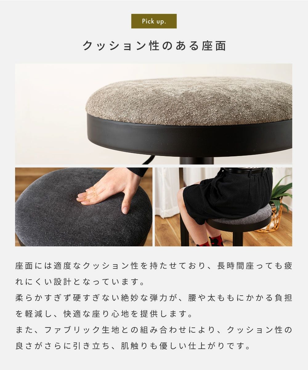 他の画像を見る 空間に合わせやすい快適な回転チェア カウンターチェア 360度回転 椅子 イス スチール 布地 肘なし 肘掛けなし|PROCY 送料無料 ¥ 19,800 税込 (0) お気に入りに登録する