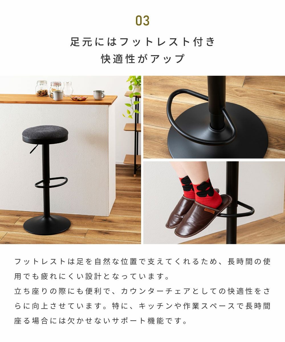 他の画像を見る フットレスト付きで座りやすいハイチェア カウンターチェア チェア スツール 昇降式 高さ調整 ガス圧 カフェ キッチン|ABREL 送料無料 ¥ 16,544 税込 (0) お気に入りに登録する