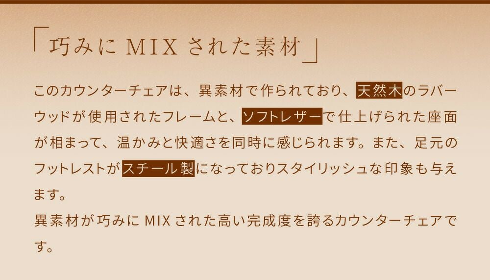 他の画像を見る デザイン性あふれるカウンターチェア カウンターチェア チェア 椅子 イス ハイチェア スチール レザー 合皮 木製|IAVIA 送料無料 ¥ 22,880 税込 在庫切れ (0) お気に入りに登録する