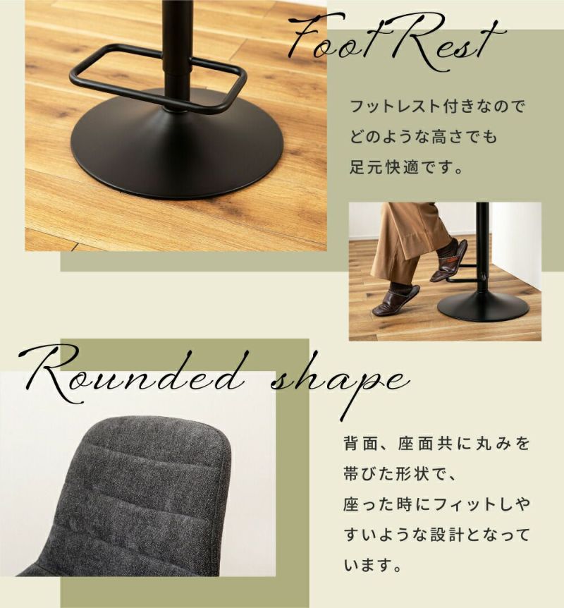 カウンターチェア ハイチェア 昇降 レバー式 高さ調節 背もたれ 回転 肘なし ファブリック 足置き スチール 椅子 おしゃれ モダン シンプル インダストリアル