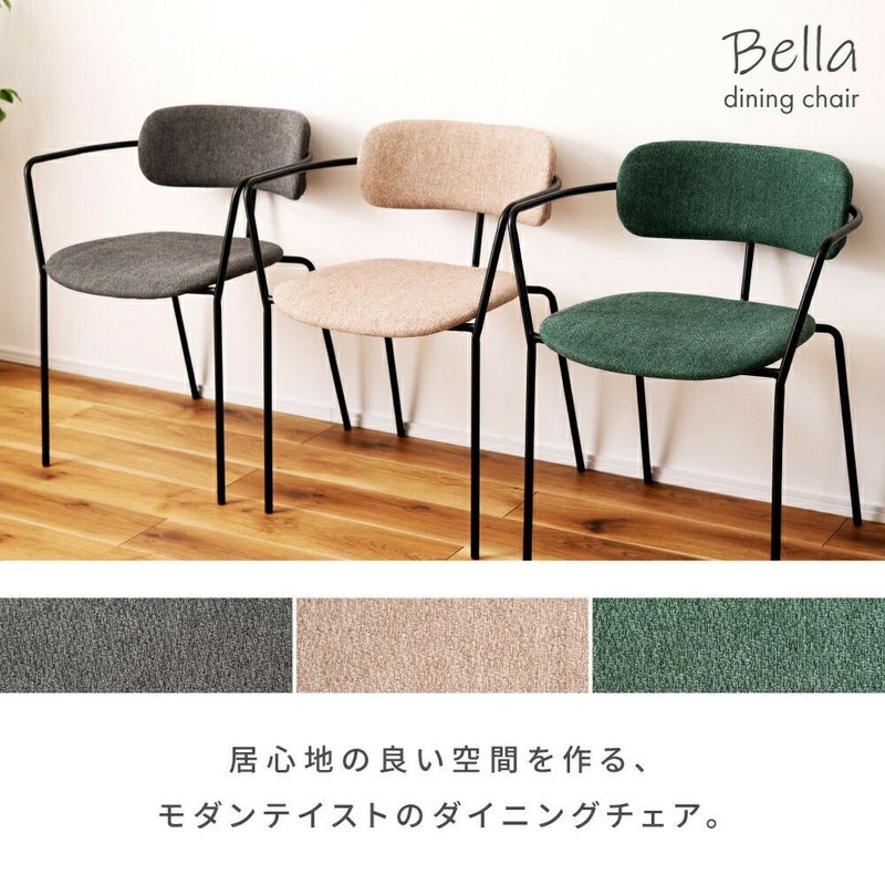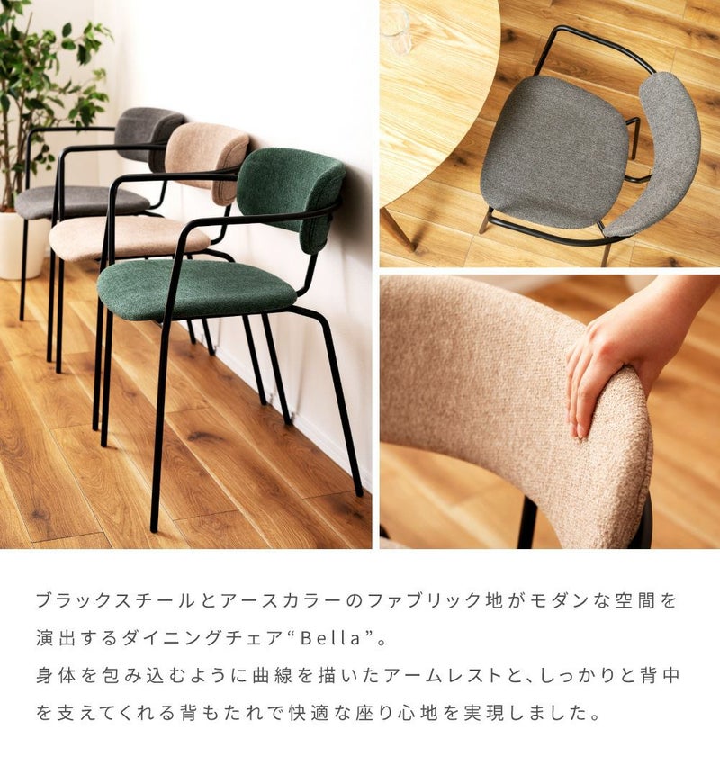 ブラックスチールとアースカラーのファブリック地がモダンな空間を演出するダイニングチェア“Bella”。