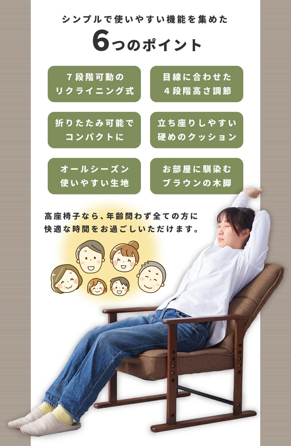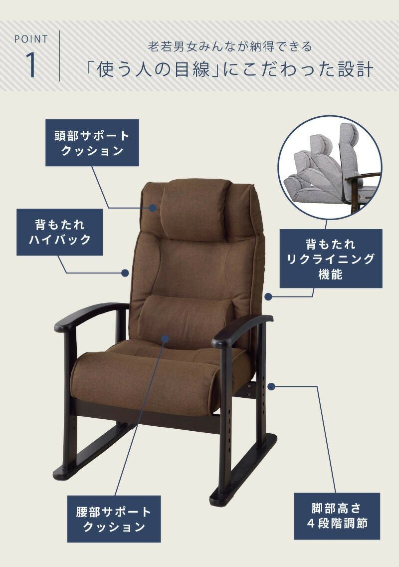他の画像を見る 背・頭・腰のリクライニング可能な座椅子 高座椅子 リクライニング 座面高38cm 高齢者 チェア いす イス 椅子|LOVI 送料無料 ¥ 29,480 税込 (0) お気に入りに登録する