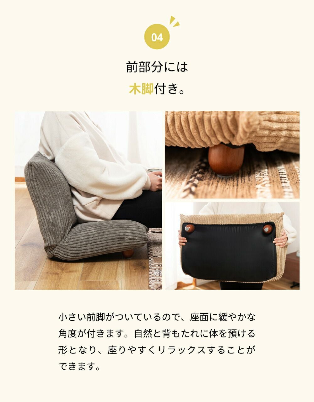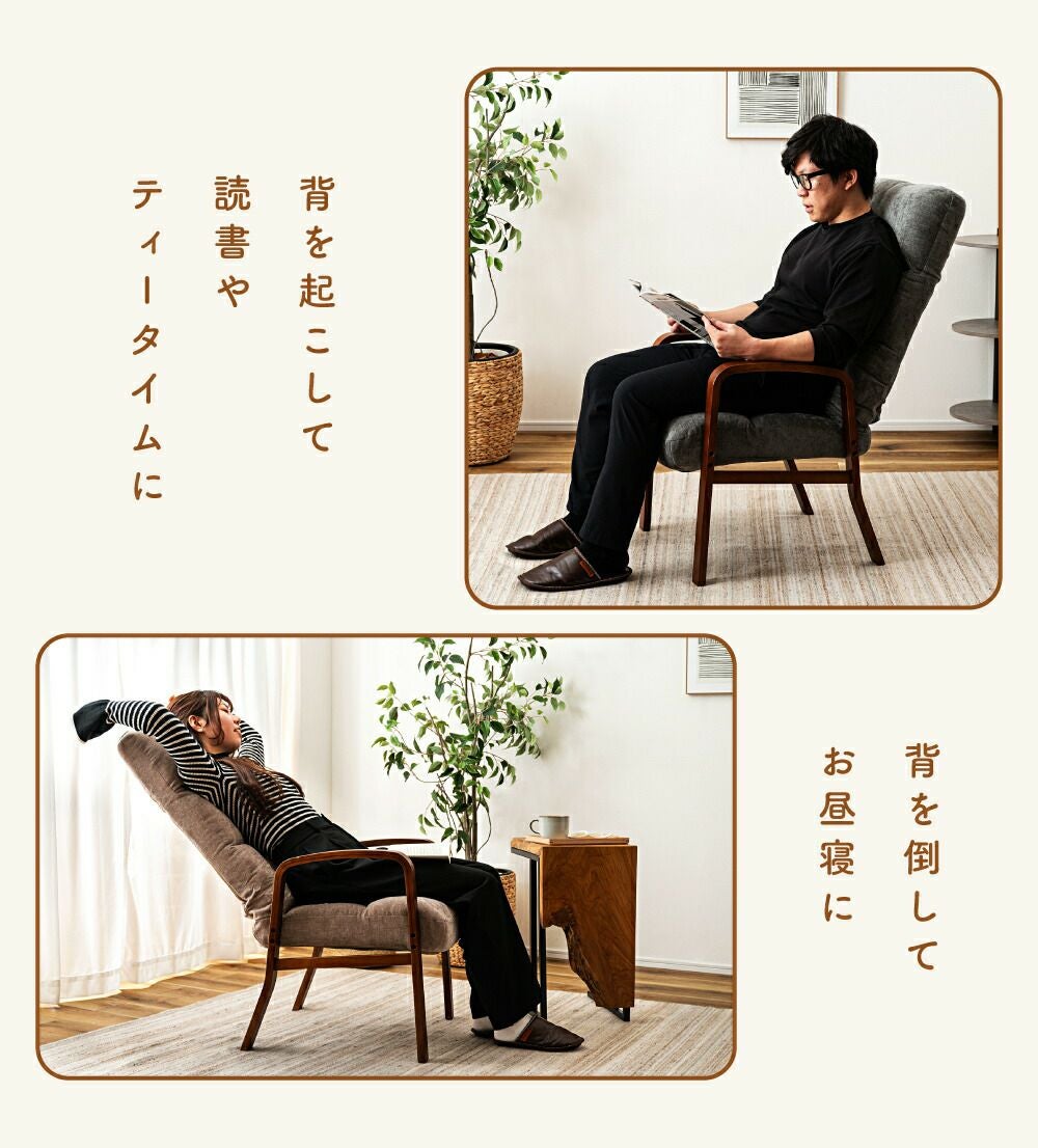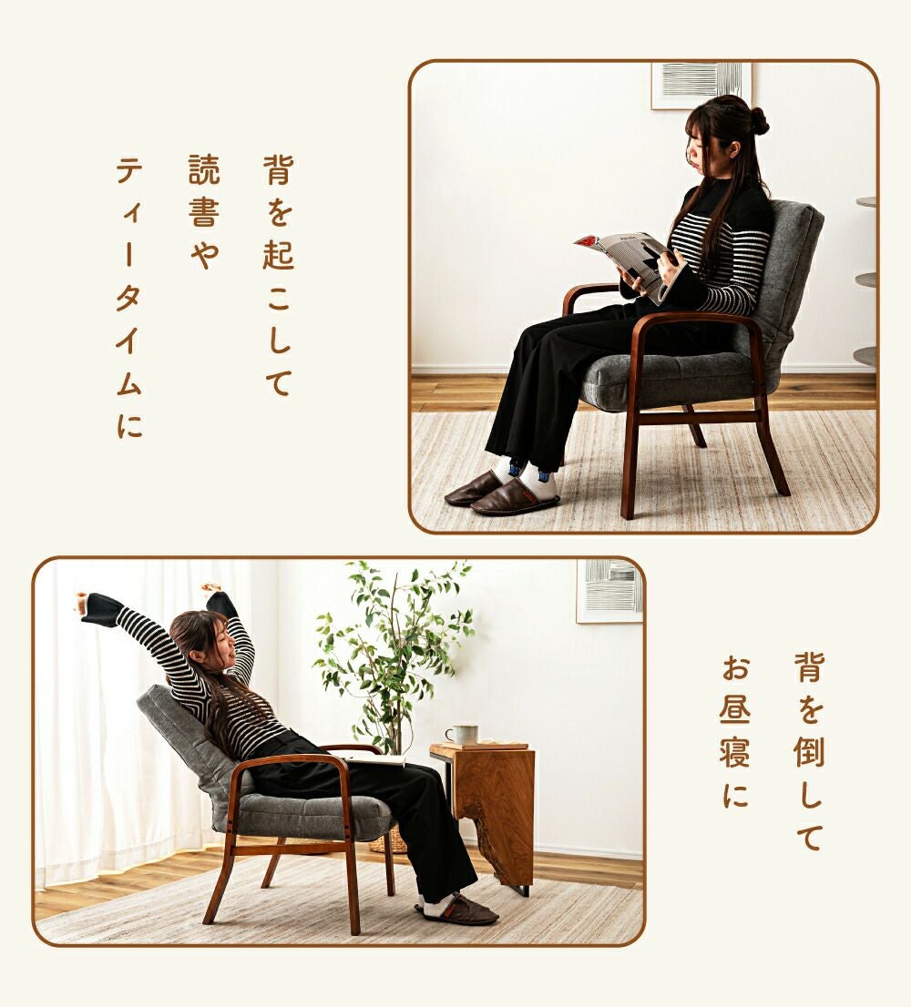 他の画像を見る 身体に合わせてリクライニングできる座椅子 座椅子 リクライナー フロアチェア おしゃれ 1人掛け 木脚 折りたたみ|WAREA 送料無料 ¥ 13,640 税込 (0) お気に入りに登録する