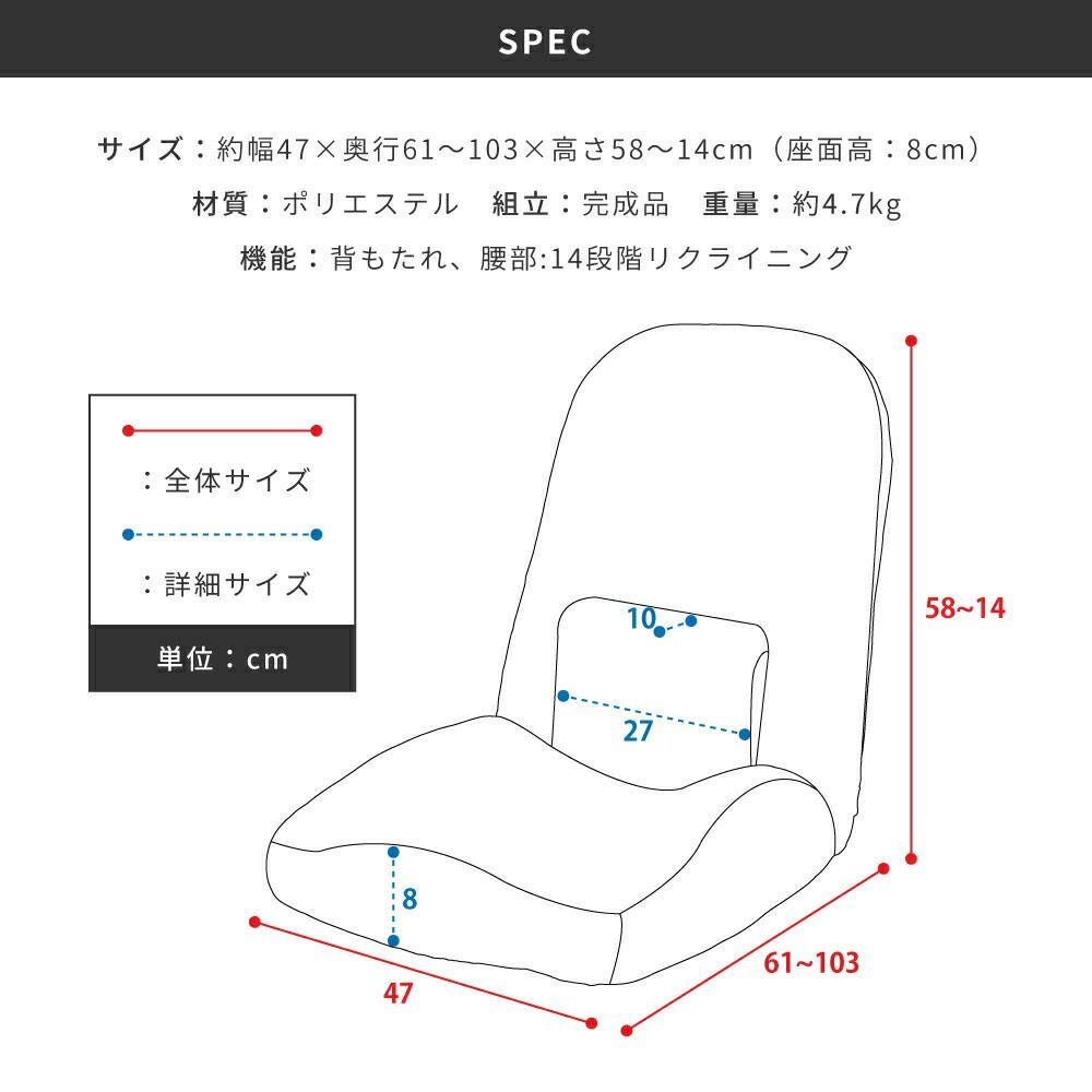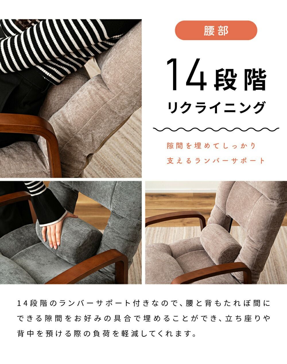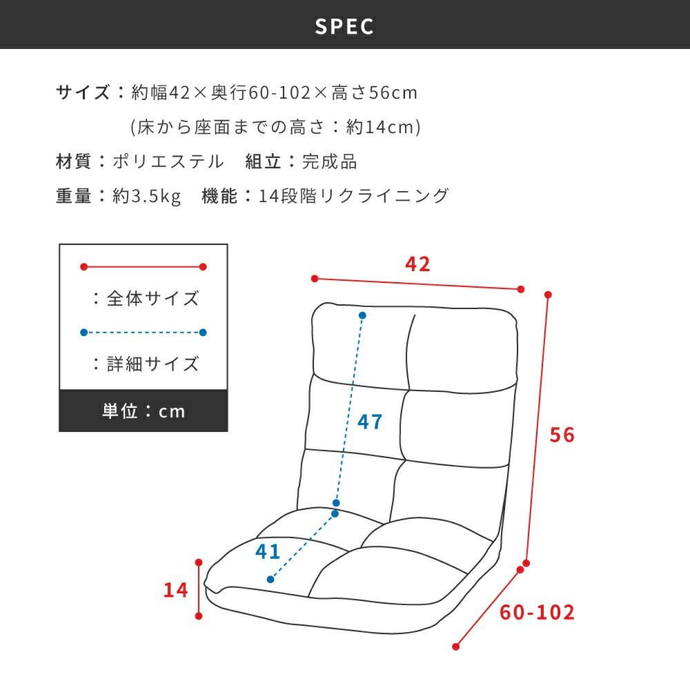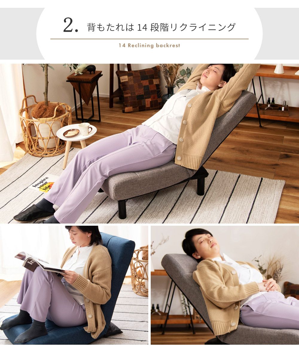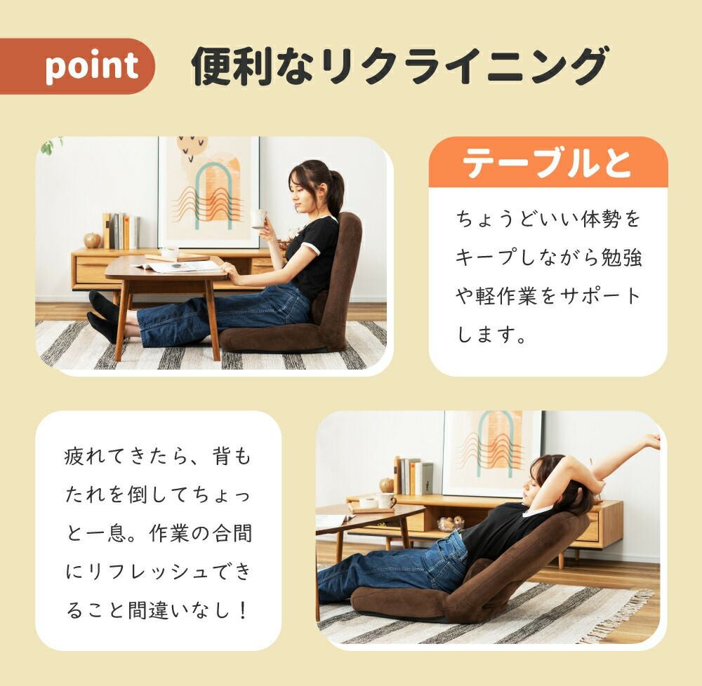 他の画像を見る 14段階で調節できるリクライニング 高座椅子 リクライニング 4段階ギア 高さ調節 チェア リクライニングソファ|Zara 送料無料 ¥ 34,650 税込 (0) お気に入りに登録する